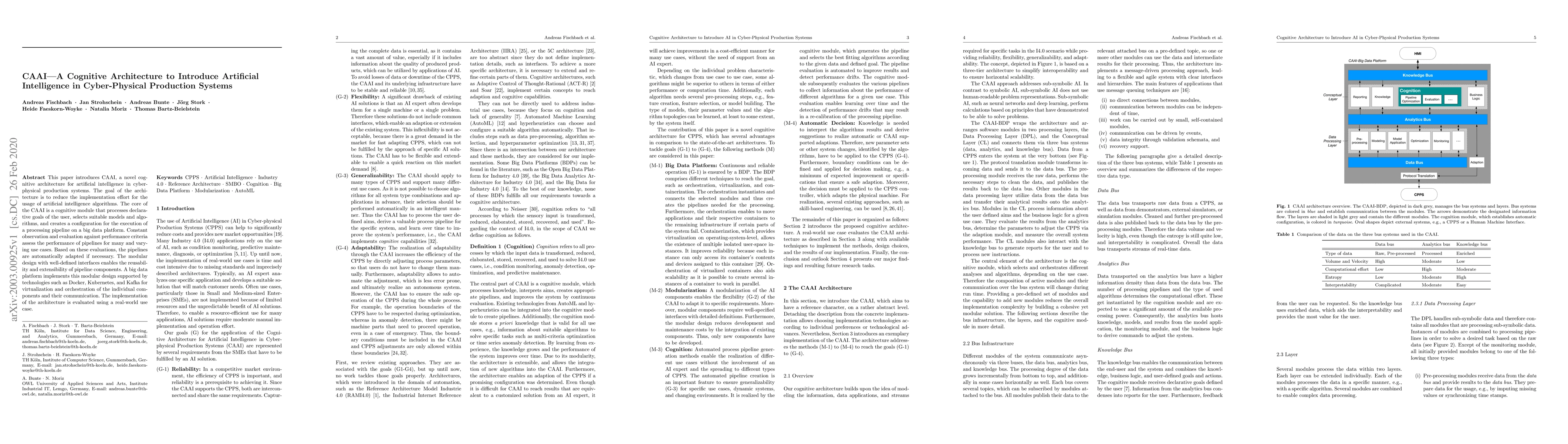 This paper presents CAAI, a cognitive architecture designed to simplify the integration of AI in cyber-physical production systems by automating model selection, pipeline configuration, and performance evaluation. The architecture is modular and supported by big data technologies, demonstrated through a real-world application.