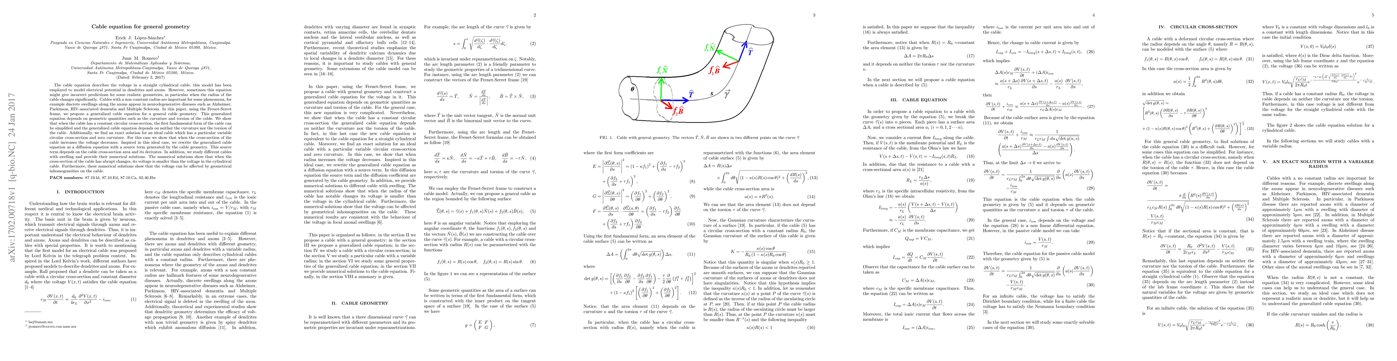 This paper proposes a generalized cable equation to model electrical potential in cables with non-constant radii, using the Frenet-Serret frame. It demonstrates that the voltage in such cables can be affected by geometric quantities like curvature and torsion, and provides numerical solutions showing that geometrical inhomogeneities significantly influence the cable's voltage.