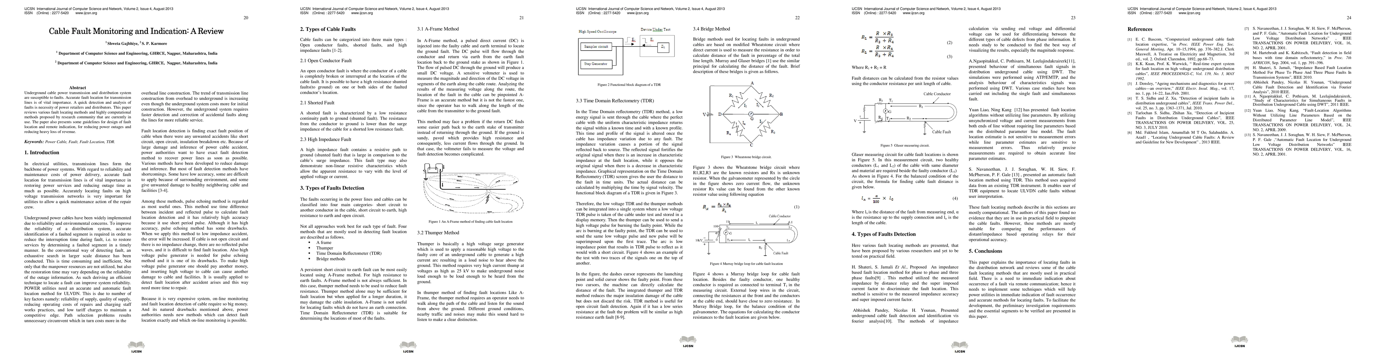 Underground cable power transmission and distribution system are susceptible to faults. Accurate fault location for transmission lines is of vital importance. A quick detection and analysis of faults is necessity of power retailers and distributors. This paper reviews various fault locating methods and highly computational methods proposed by research community that are currently in use. The paper also presents some guidelines for design of fault location and remote indication, for reducing power outages and reducing heavy loss of revenue.