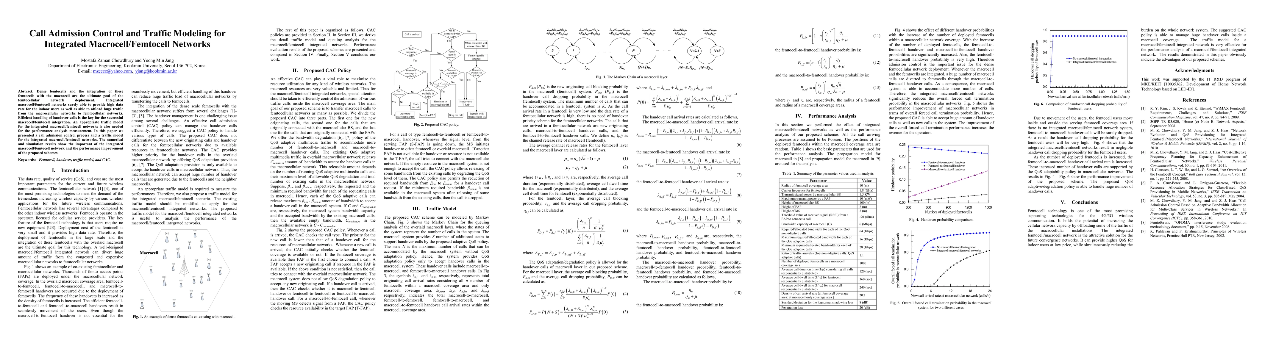 This paper proposes a call admission control process and a traffic model for integrated macrocell/femtocell networks to enhance data rates for indoor users and offload traffic from macrocells. Simulation results demonstrate the effectiveness of the proposed schemes in improving network performance.