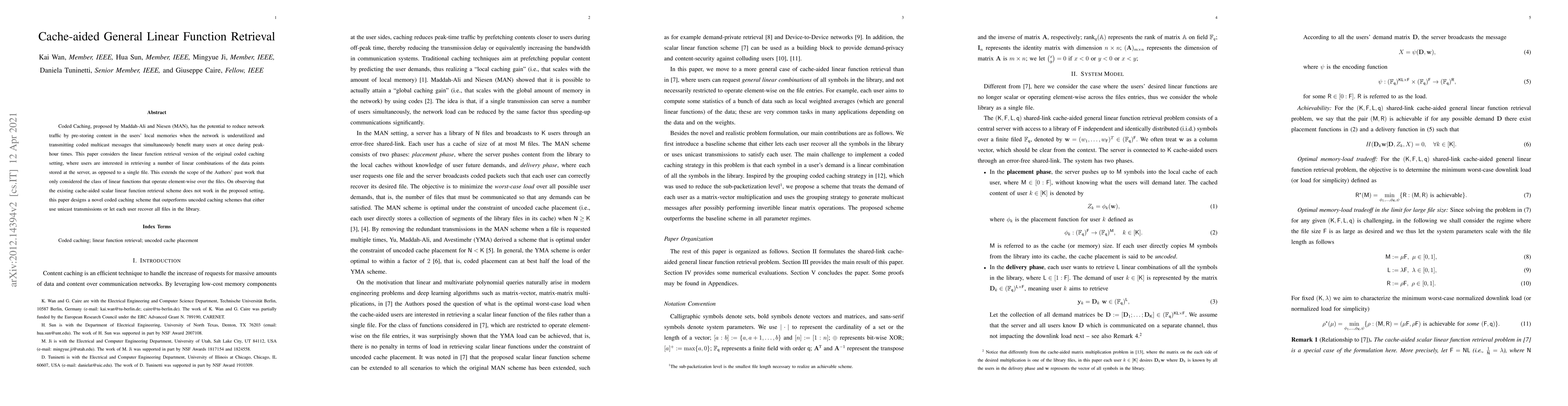 This paper introduces a novel coded caching scheme for linear function retrieval, extending beyond element-wise linear functions to handle more complex linear combinations. It proposes a new method that reduces network traffic more effectively than existing uncoded caching approaches.
