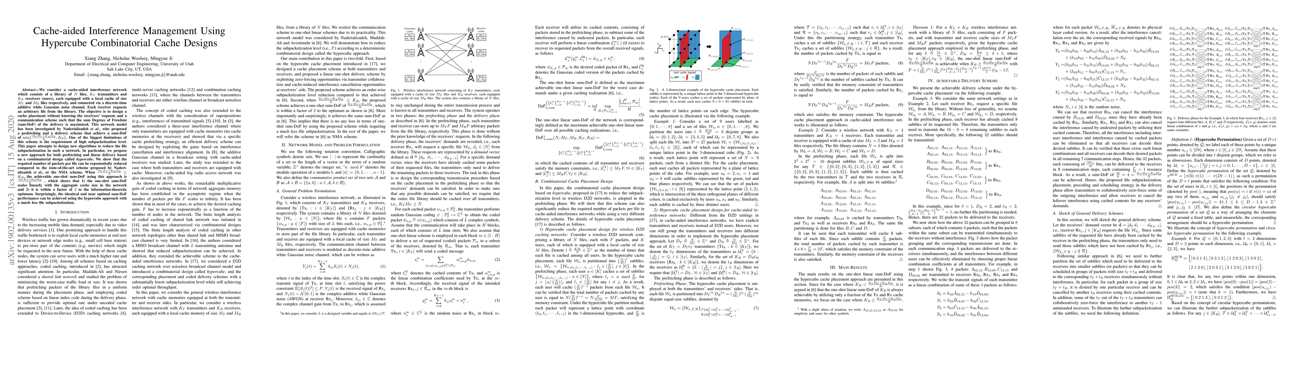 This paper proposes a novel cache-aided interference management scheme using hypercube combinatorial designs to reduce file subpacketization in cache-aided networks. The new approach achieves a one-shot sum-DoF that scales linearly with aggregate cache size and is near-optimal, significantly reducing the number of packets per file compared to existing methods.