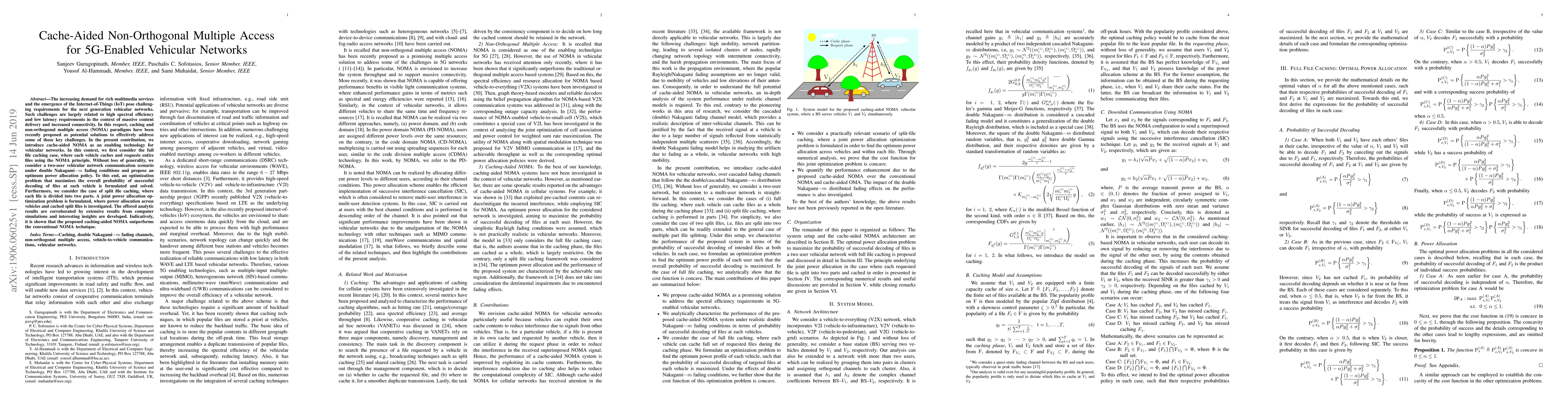 This paper proposes cache-aided non-orthogonal multiple access (NOMA) for 5G vehicular networks to meet high spectral efficiency and low latency demands. It formulates an optimization problem to maximize successful decoding probability under double Nakagami-$m$ fading, showing that caching-aided NOMA improves performance over conventional NOMA.