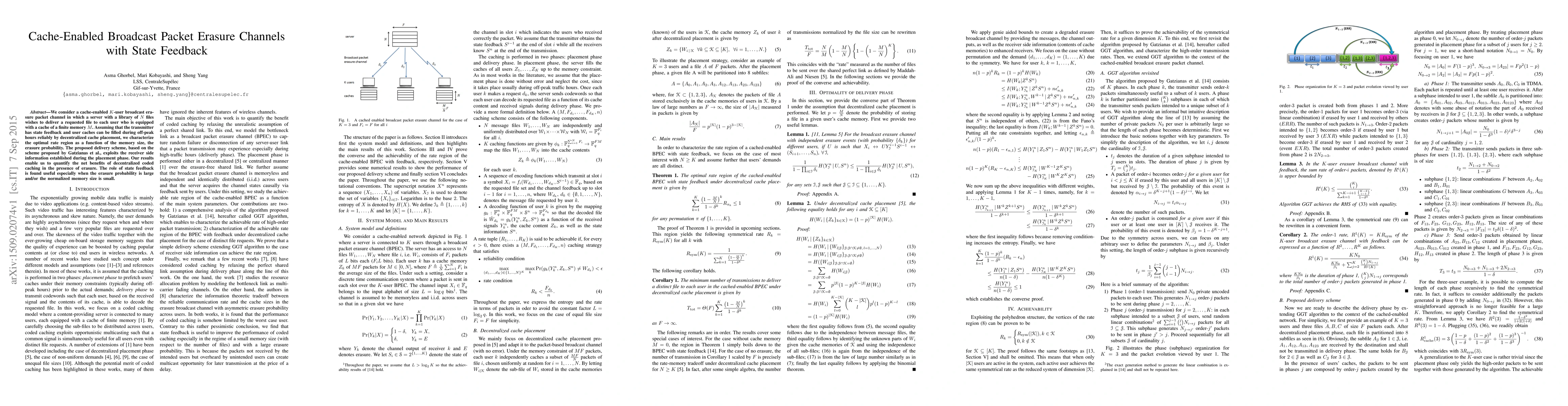 This paper investigates a cache-enabled broadcast packet erasure channel where a server aims to deliver requested files to K users with finite cache memory, leveraging state feedback and decentralized cache placement. The study characterizes the optimal rate region, highlighting the benefits of decentralized caching, especially under high erasure probabilities or limited cache sizes.