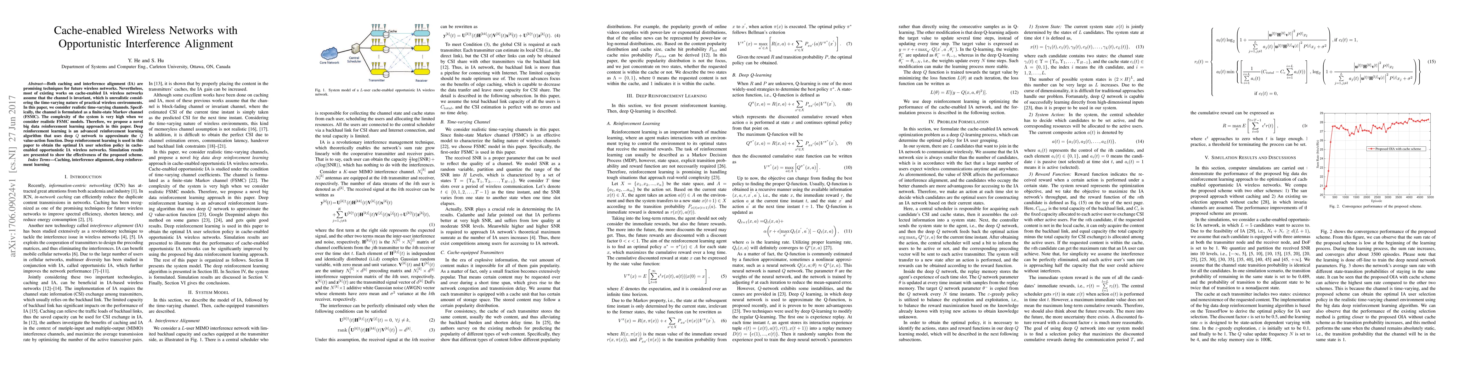 This paper proposes a deep reinforcement learning approach to optimize interference alignment in cache-enabled wireless networks with time-varying channels modeled as a finite-state Markov channel. The method uses deep Q-networks to determine the optimal user selection policy, demonstrating its effectiveness through simulations.