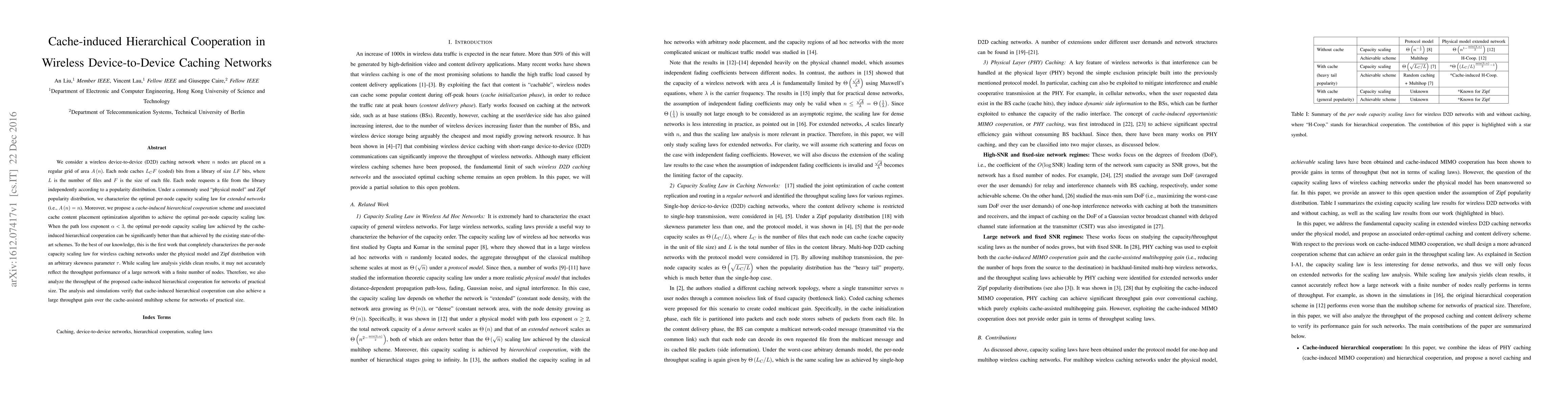 We consider a wireless device-to-device (D2D) caching network where n nodes are placed on a regular grid of area A(n). Each node caches L_C*F (coded) bits from a library of size L*F bits, where L is the number of files and F is the size of each file. Each node requests a file from the library independently according to a popularity distribution. Under a commonly used "physical model" and Zipf popularity distribution, we characterize the optimal per-node capacity scaling law for extended networks (i.e., A(n). Moreover, we propose a cache-induced hierarchical cooperation scheme and associated cache content placement optimization algorithm to achieve the optimal per-node capacity scaling law. When the path loss exponent \alpha<3, the optimal per-node capacity scaling law achieved by the cache-induced hierarchical cooperation can be significantly better than that achieved by the existing state-of-the-art schemes. To the best of our knowledge, this is the first work that completely characterizes the per-node capacity scaling law for wireless caching networks under the physical model and Zipf distribution with an arbitrary skewness parameter \tau. While scaling law analysis yields clean results, it may not accurately reflect the throughput performance of a large network with a finite number of nodes. Therefore, we also analyze the throughput of the proposed cache-induced hierarchical cooperation for networks of practical size. The analysis and simulations verify that cache-induced hierarchical cooperation can also achieve a large throughput gain over the cache-assisted multihop scheme for networks of practical size.