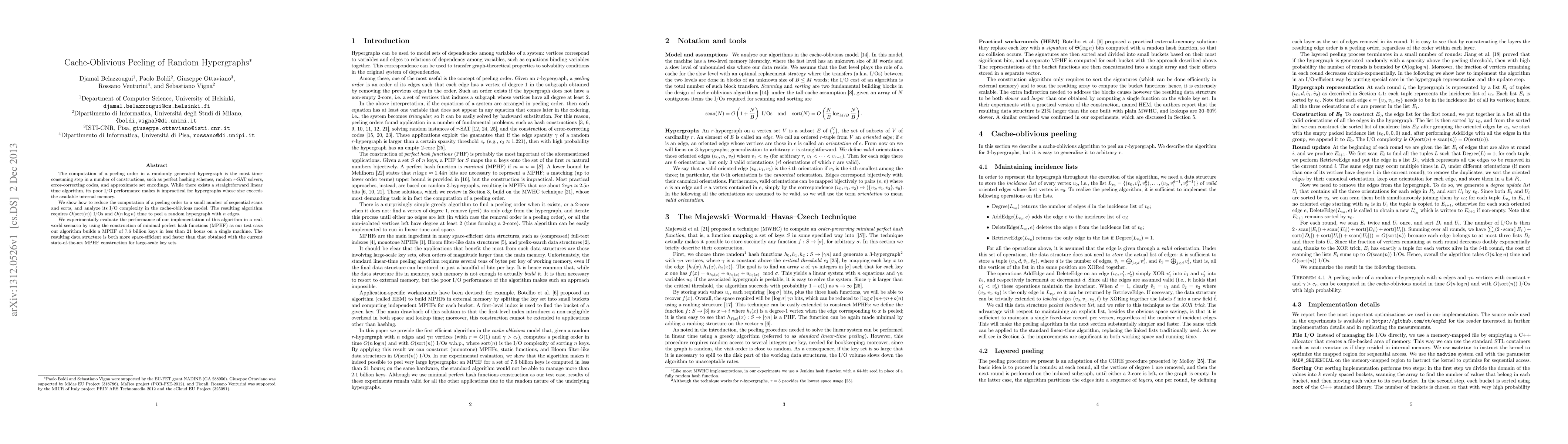 Researchers develop an efficient algorithm to compute peeling orders in random hypergraphs, reducing I/O complexity from impractical to manageable, with applications in perfect hashing schemes and other constructions.