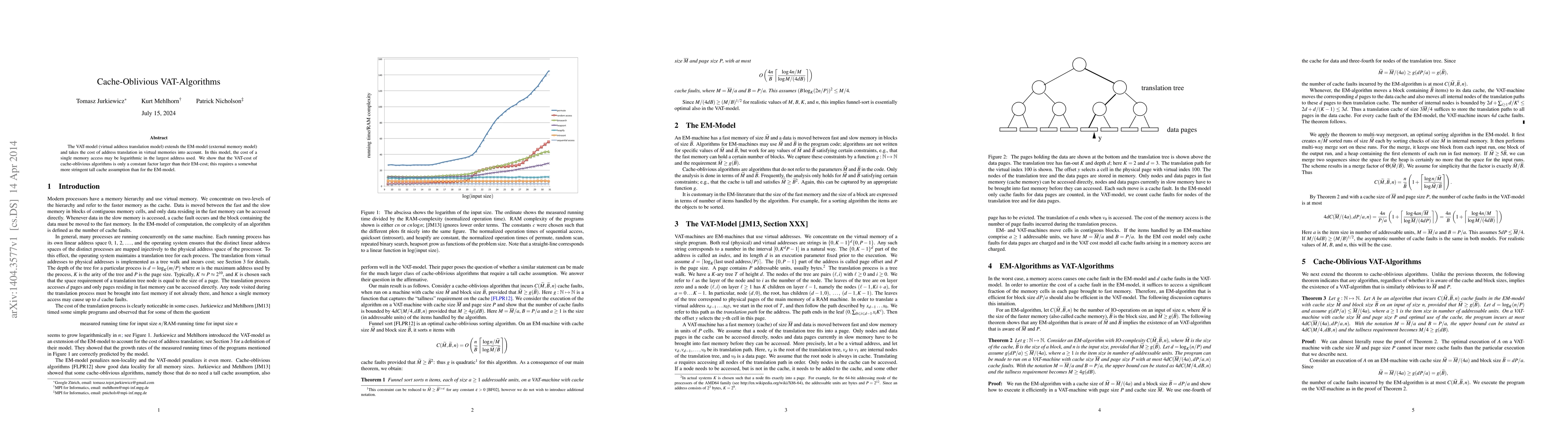 The VAT-model (virtual address translation model) extends the EM-model (external memory model) and takes the cost of address translation in virtual memories into account. In this model, the cost of a single memory access may be logarithmic in the largest address used. We show that the VAT-cost of cache-oblivious algorithms is only by a constant factor larger than their EM-cost; this requires a somewhat more stringent tall cache assumption as for the EM-model.