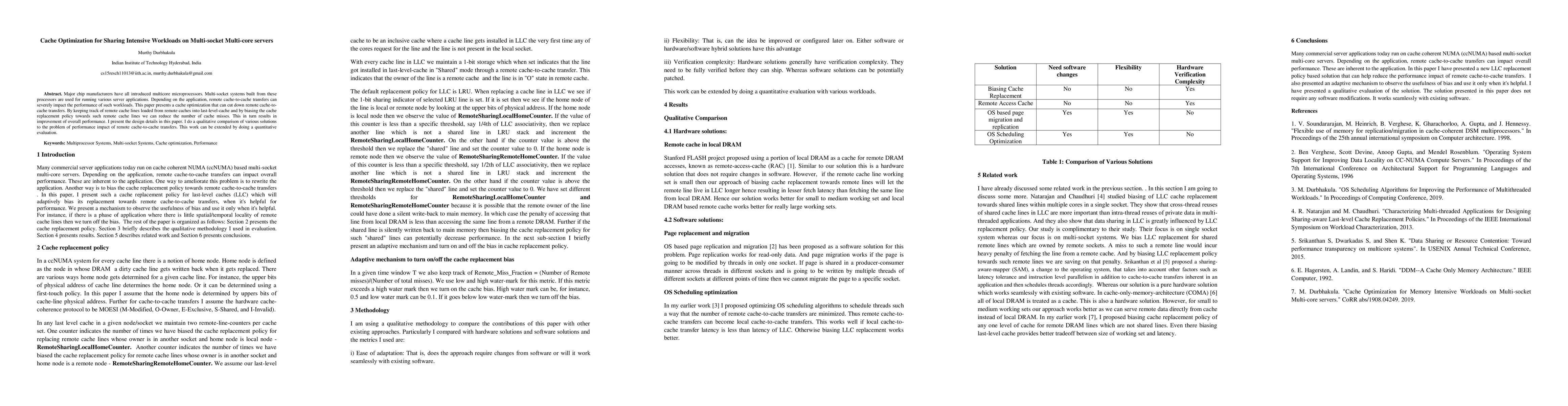 This paper proposes a cache optimization technique to reduce remote cache-to-cache transfers in multi-socket multi-core servers, aiming to improve performance by tracking and prioritizing remote cache lines in the last-level cache. The design details and qualitative comparisons of different solutions are presented, with a suggestion for quantitative evaluation in future work.