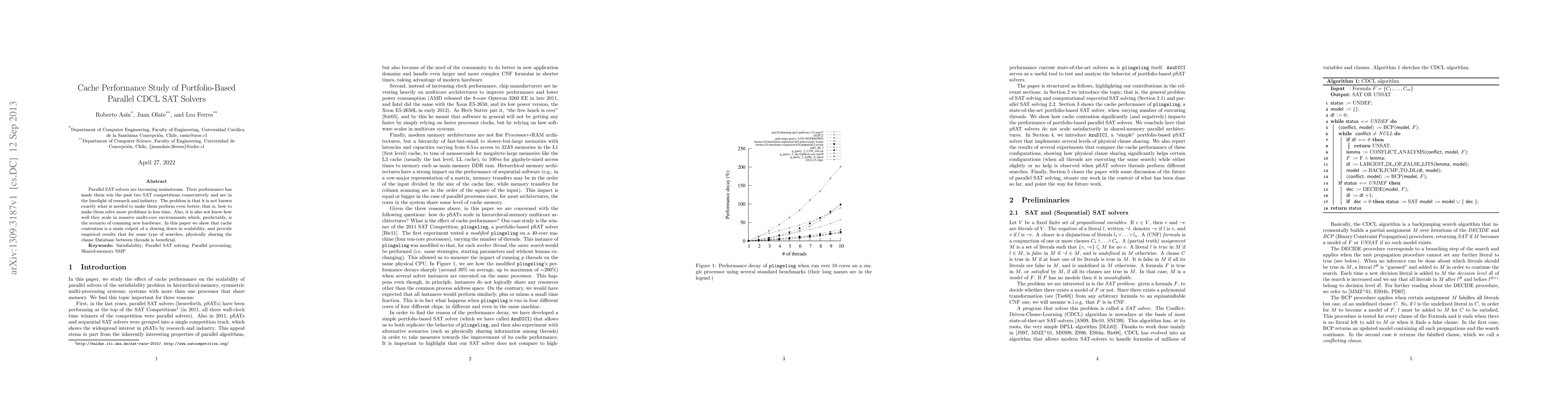 This paper investigates the cache performance of portfolio-based parallel CDCL SAT solvers, finding that cache contention significantly hampers scalability in multi-core environments. It concludes that physically sharing the clause database among threads can be beneficial for certain search types.