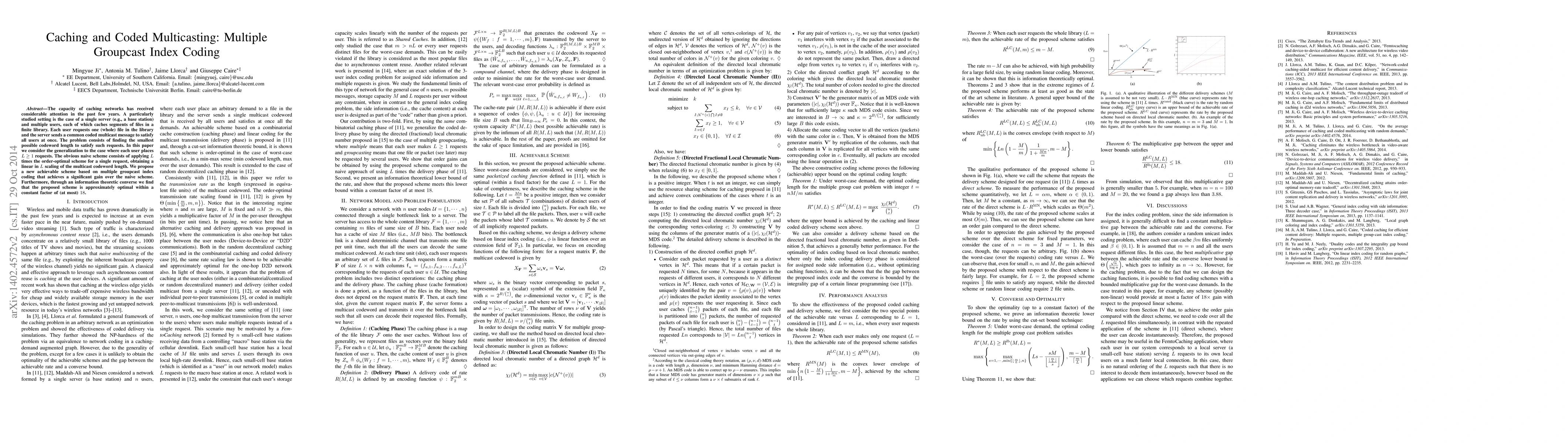 The capacity of caching networks has received considerable attention in the past few years. A particularly studied setting is the case of a single server (e.g., a base station) and multiple users, each of which caches segments of files in a finite library. Each user requests one (whole) file in the library and the server sends a common coded multicast message to satisfy all users at once. The problem consists of finding the smallest possible codeword length to satisfy such requests. In this paper we consider the generalization to the case where each user places $L \geq 1$ requests. The obvious naive scheme consists of applying $L$ times the order-optimal scheme for a single request, obtaining a linear in $L$ scaling of the multicast codeword length. We propose a new achievable scheme based on multiple groupcast index coding that achieves a significant gain over the naive scheme. Furthermore, through an information theoretic converse we find that the proposed scheme is approximately optimal within a constant factor of (at most) $18$.