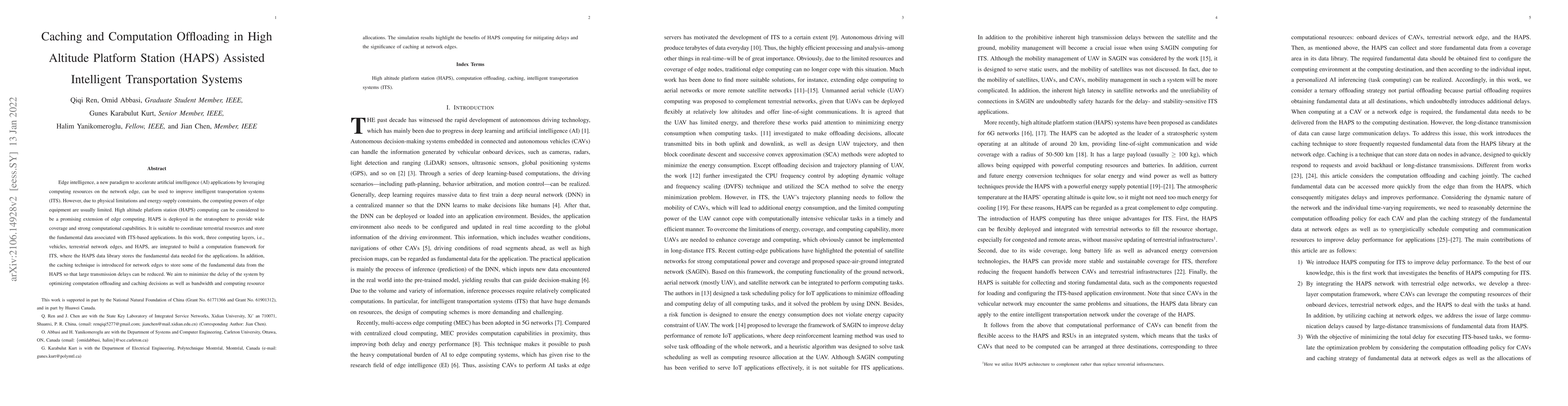A new approach uses High Altitude Platform Stations (HAPS) to accelerate intelligent transportation systems by caching and offloading computation, reducing delays and improving efficiency.