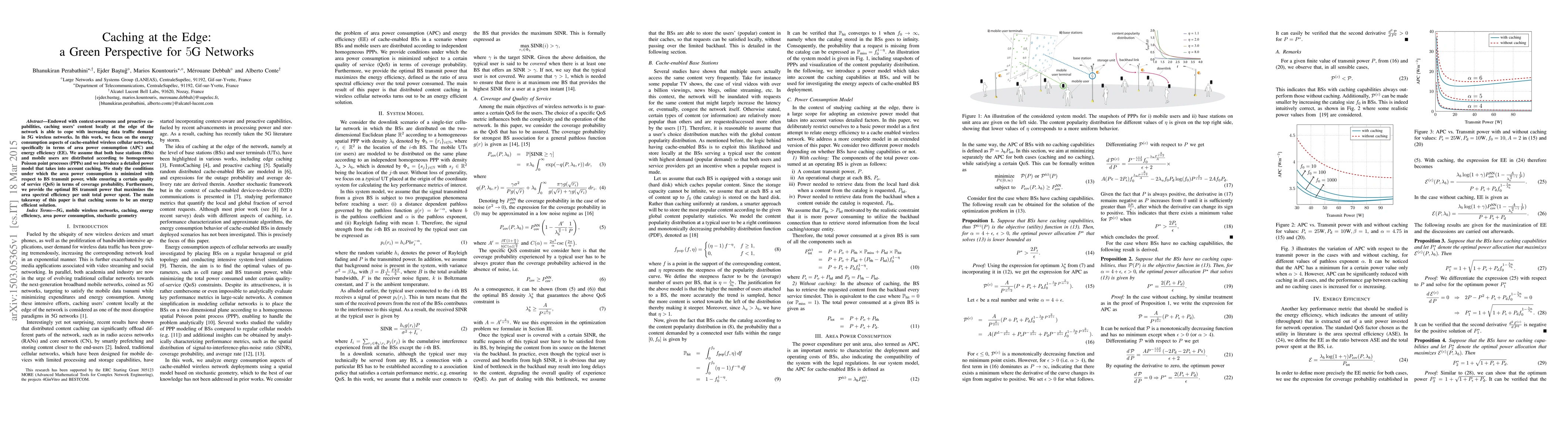 This paper investigates the energy efficiency of cache-enabled 5G networks, focusing on minimizing area power consumption and maximizing energy efficiency through caching at the network edge. The study concludes that caching is an effective strategy for reducing energy consumption while maintaining service quality.