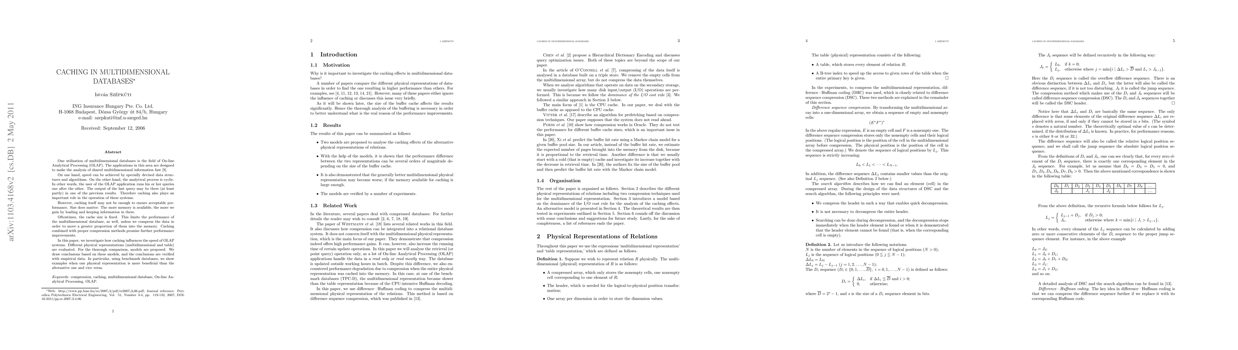 This paper explores how caching strategies, combined with data compression methods, can significantly enhance the performance of On-line Analytical Processing (OLAP) systems in multidimensional databases. The study evaluates different physical data representations and proposes models to compare their effectiveness, concluding with empirical data validation.