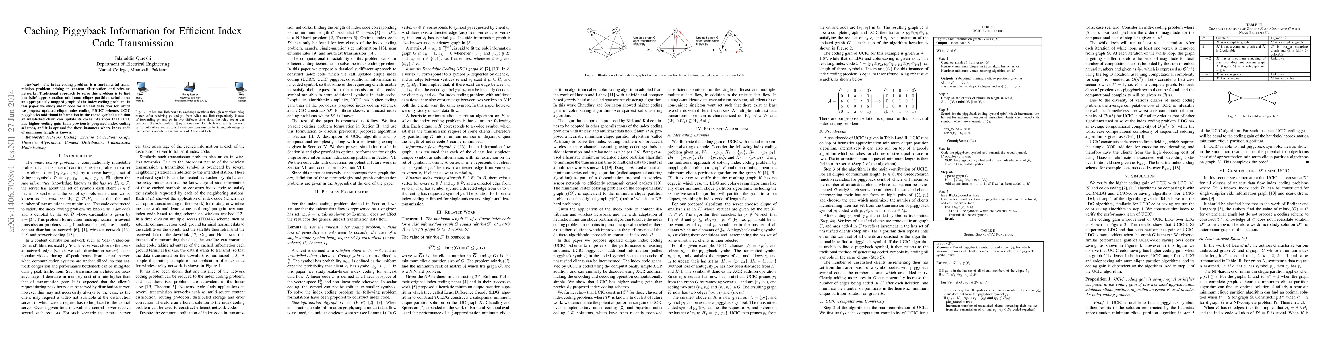 The index coding problem is a fundamental transmission problem arising in content distribution and wireless networks. Traditional approach to solve this problem is to find heuristic/ approximation minimum clique partition solution on an appropriately mapped graph of the index coding problem. In this paper we study index code for unicast data flow for which we propose updated clique index coding (UCIC) scheme, UCIC piggybacks additional information in the coded symbol such that an unsatisfied client can update its cache. We show that UCIC has higher coding gain than previously proposed index coding schemes, and it is optimal for those instances where index code of minimum length is known.