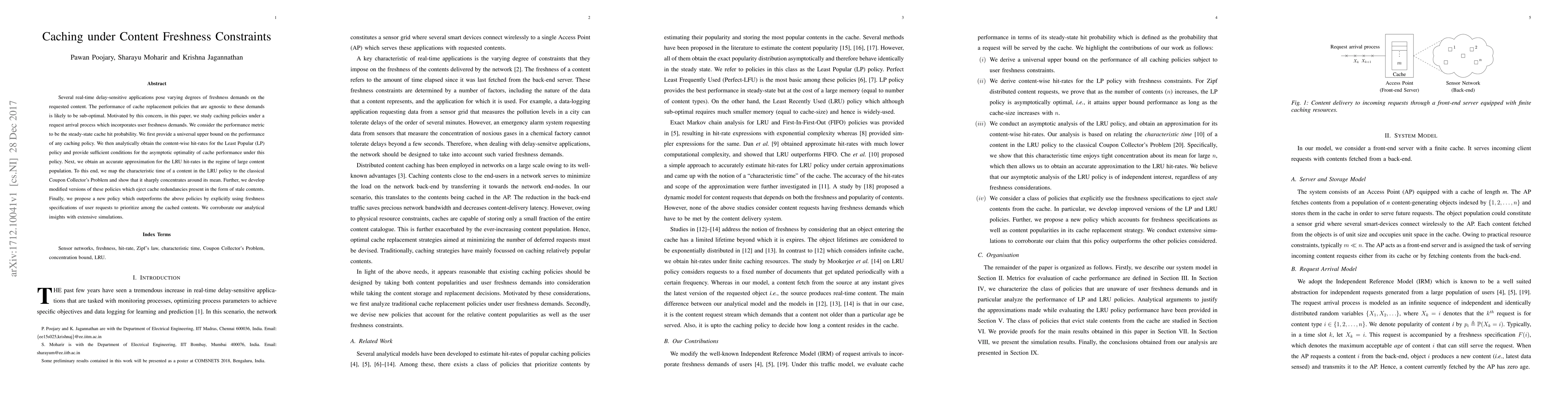 This paper investigates caching policies under user freshness demands, aiming to optimize cache hit probability. It develops upper bounds, analyzes Least Popular and LRU policies, and proposes a new policy that prioritizes fresh content, corroborated by simulations.