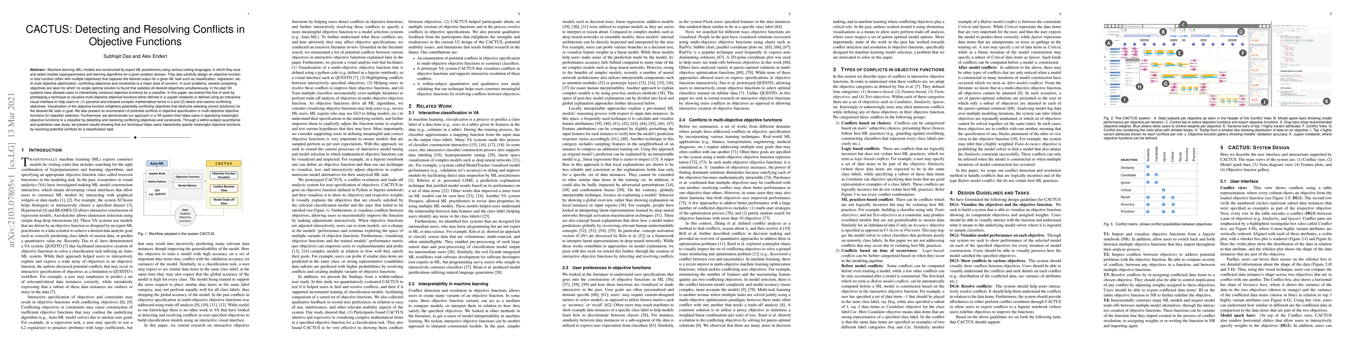 This research paper introduces CACTUS, a tool that helps users visualize and resolve conflicts in objective functions for machine learning tasks, improving the accuracy of classification models.