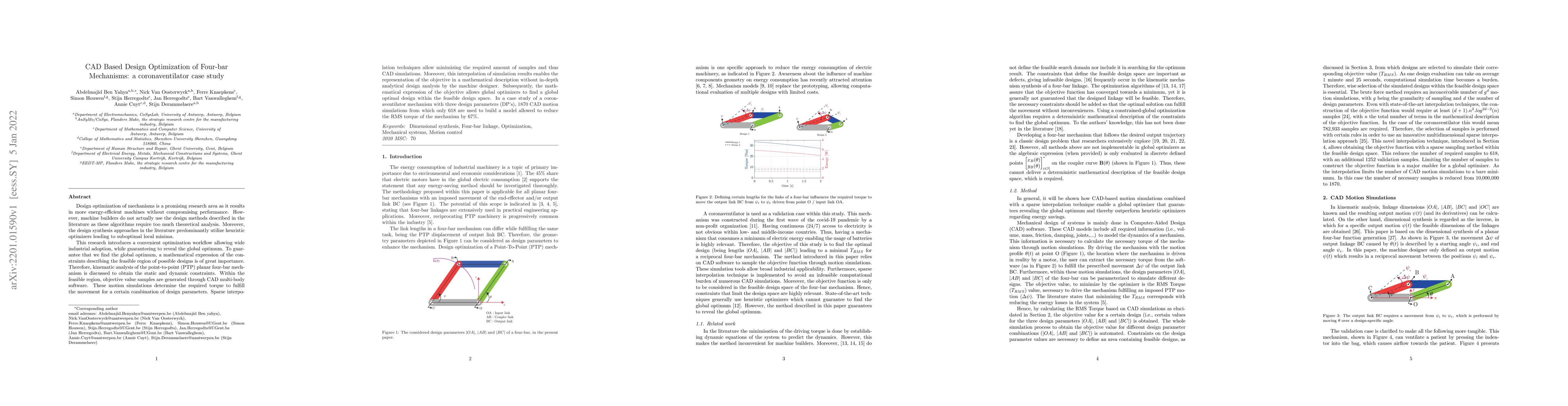 Researchers developed a method to optimize four-bar mechanisms using CAD software, reducing RMS torque by 67% in a coronaventilator mechanism, and introduced a efficient optimization workflow that can be widely adopted in industry.