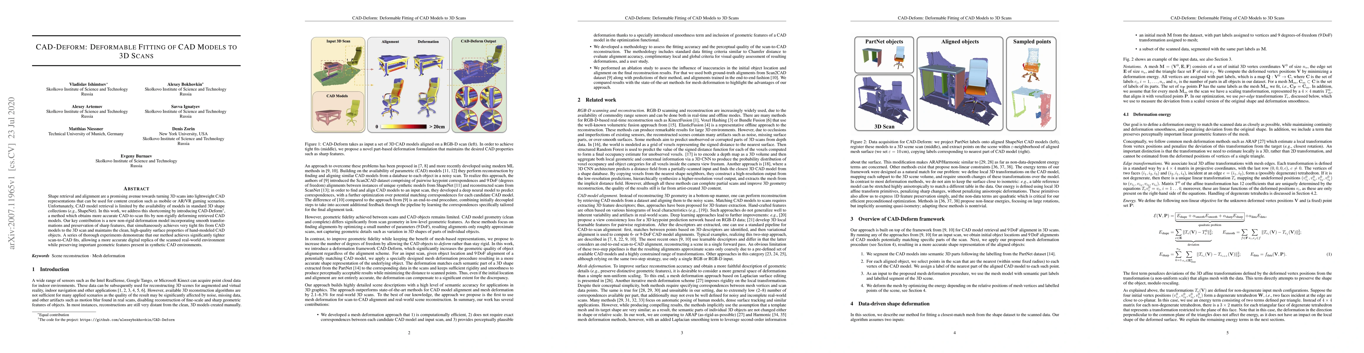 CAD-Deform introduces a novel non-rigid deformation model to accurately fit CAD models to 3D scans, achieving tighter alignments while preserving sharp features and high-quality surfaces. This method enhances the retrieval and alignment of CAD models, improving digital replicas of real-world environments.