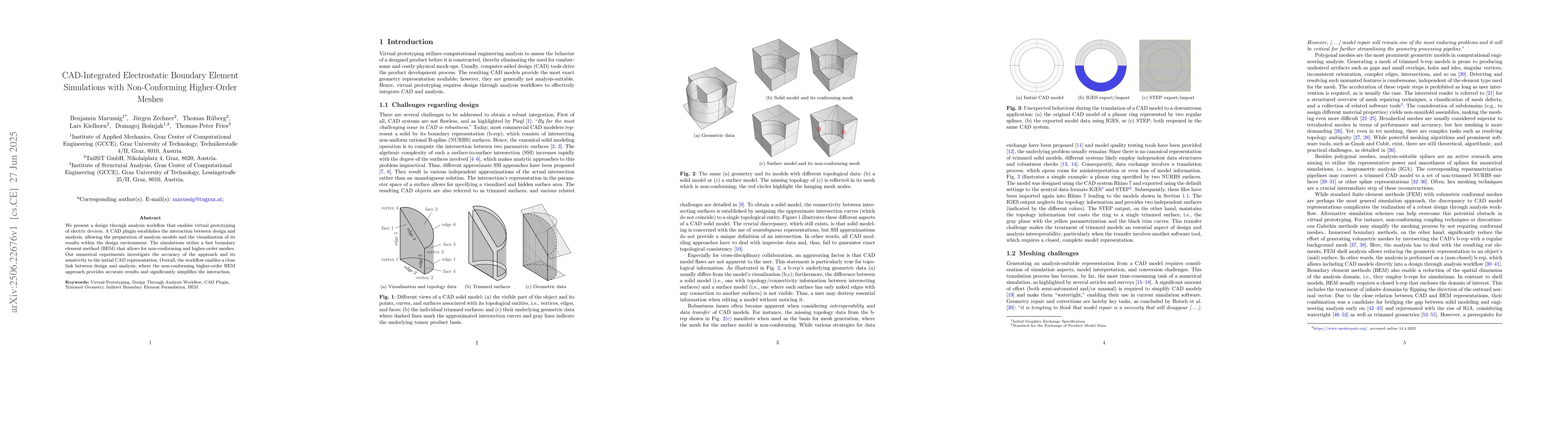 We present a design through analysis workflow that enables virtual prototyping of electric devices. A CAD plugin establishes the interaction between design and analysis, allowing the preparation of analysis models and the visualization of its results within the design environment. The simulations utilize a fast boundary element method (BEM) that allows for non-conforming and higher-order meshes. Our numerical experiments investigate the accuracy of the approach and its sensitivity to the initial CAD representation. Overall, the workflow enables a close link between design and analysis, where the non-conforming higher-order BEM approach provides accurate results and significantly simplifies the interaction.