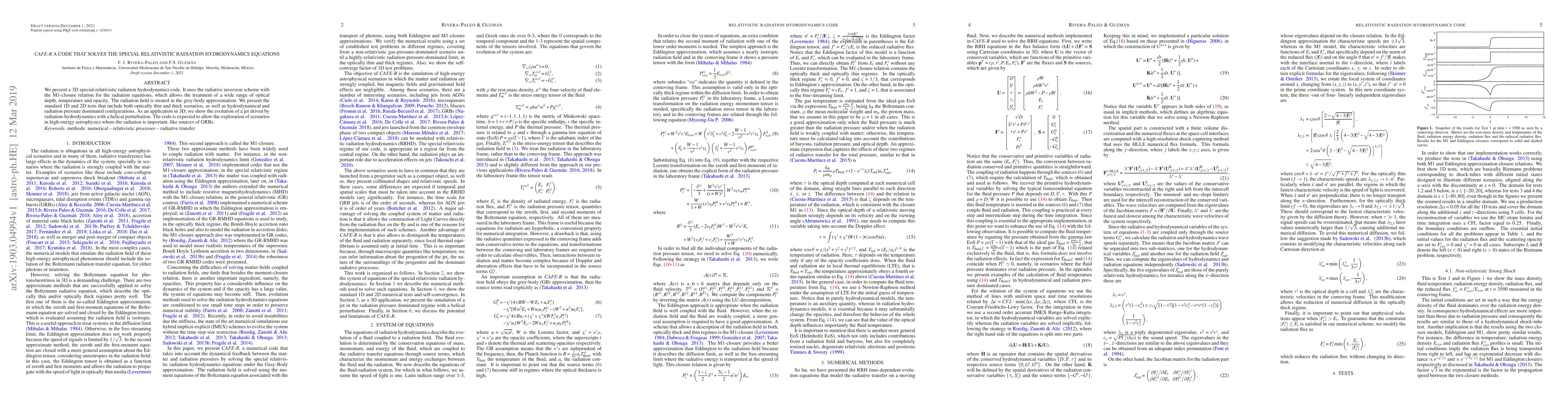 The paper introduces CAFE-R, a 3D code for solving special relativistic radiation hydrodynamics, employing the radiative inversion scheme with M1-closure for diverse optical depths and temperatures. It demonstrates the code's capabilities through various 1D, 2D, and 3D tests, including jet evolution in high-energy astrophysics scenarios.