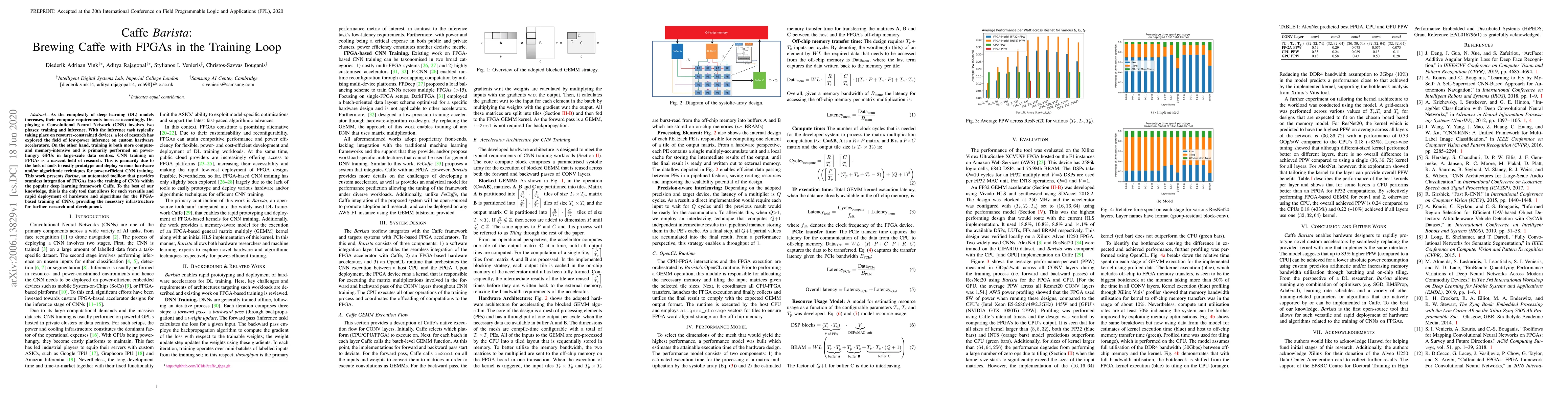 As the complexity of deep learning (DL) models increases, their compute requirements increase accordingly. Deploying a Convolutional Neural Network (CNN) involves two phases: training and inference. With the inference task typically taking place on resource-constrained devices, a lot of research has explored the field of low-power inference on custom hardware accelerators. On the other hand, training is both more compute- and memory-intensive and is primarily performed on power-hungry GPUs in large-scale data centres. CNN training on FPGAs is a nascent field of research. This is primarily due to the lack of tools to easily prototype and deploy various hardware and/or algorithmic techniques for power-efficient CNN training. This work presents Barista, an automated toolflow that provides seamless integration of FPGAs into the training of CNNs within the popular deep learning framework Caffe. To the best of our knowledge, this is the only tool that allows for such versatile and rapid deployment of hardware and algorithms for the FPGA-based training of CNNs, providing the necessary infrastructure for further research and development.