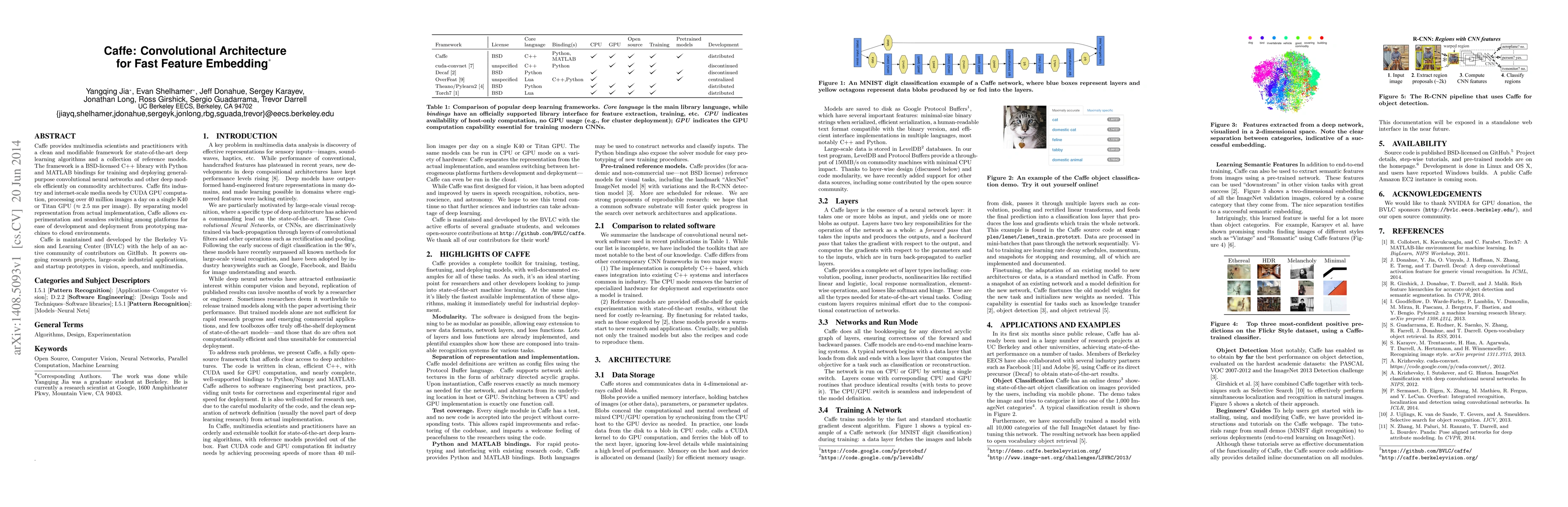 Caffe distinguishes itself from other deep learning frameworks by being fully C++ based, easing integration into existing C++ systems, and providing off-the-shelf reference models for quick experimentation with state-of-the-art results.