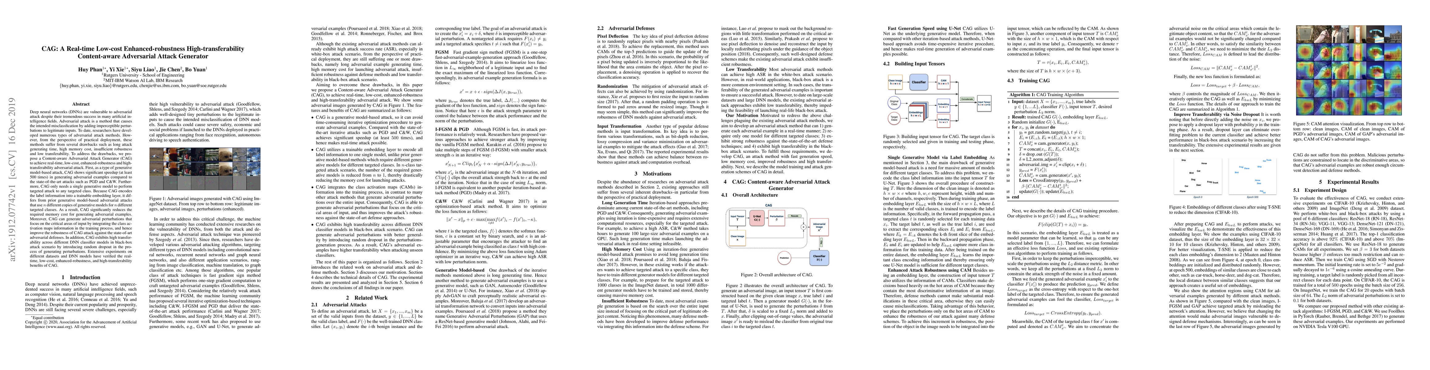 The paper proposes a Content-aware Adversarial Attack Generator (CAG) to create adversarial examples quickly and cost-effectively, while enhancing robustness and transferability. CAG significantly speeds up attack generation and reduces memory costs by using a single generative model and label embedding, and it demonstrates high transferability across different neural networks.