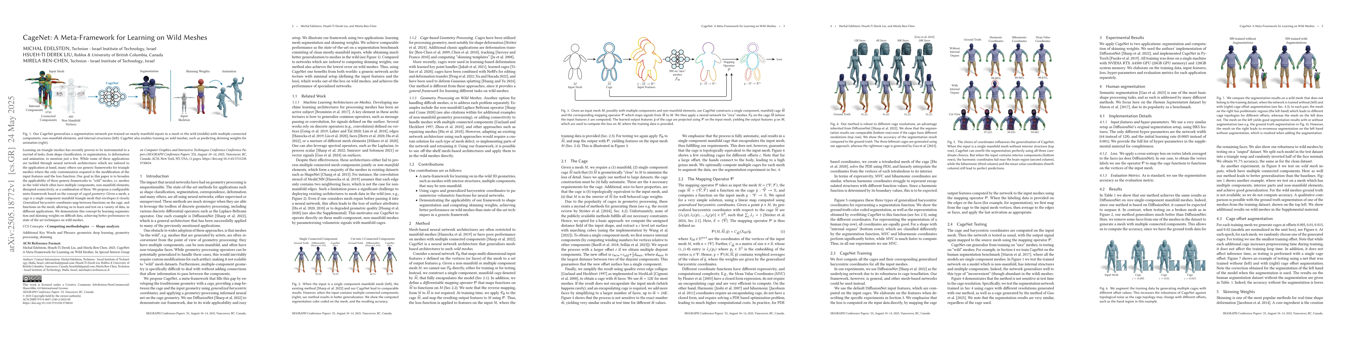 CageNet, a meta-framework leveraging caged geometry and generalized barycentric coordinates for learning on 'wild' triangle meshes, providing a configurable solution for diverse mesh processing tasks.