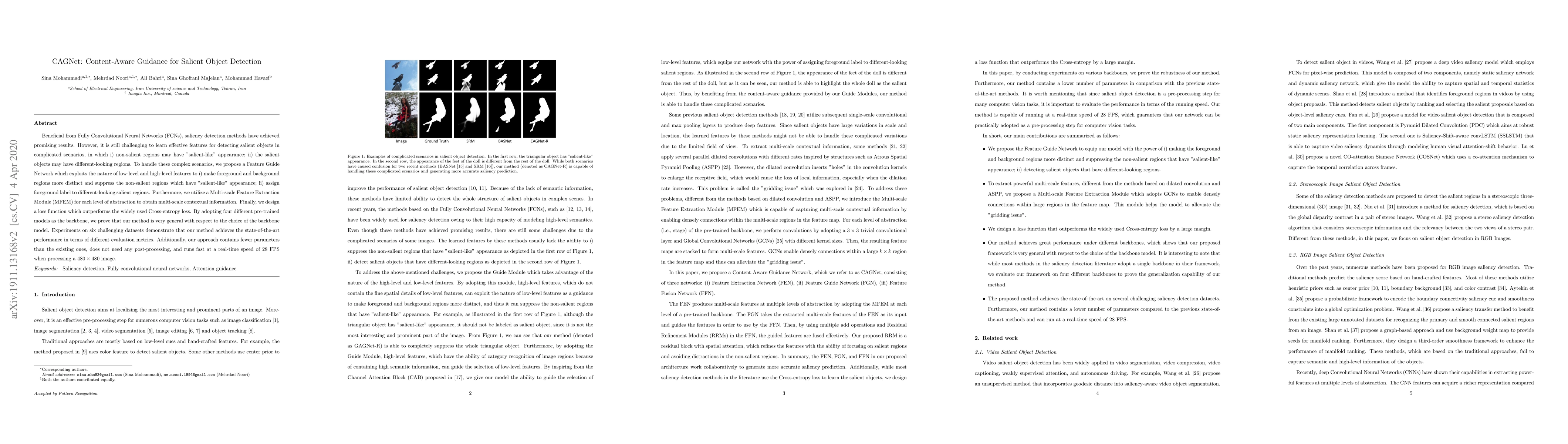 Researchers developed CAGNet, a saliency detection method that improves performance in complicated scenarios with complex background and foreground regions. Their approach achieves state-of-the-art results while requiring fewer parameters and running at real-time speeds.