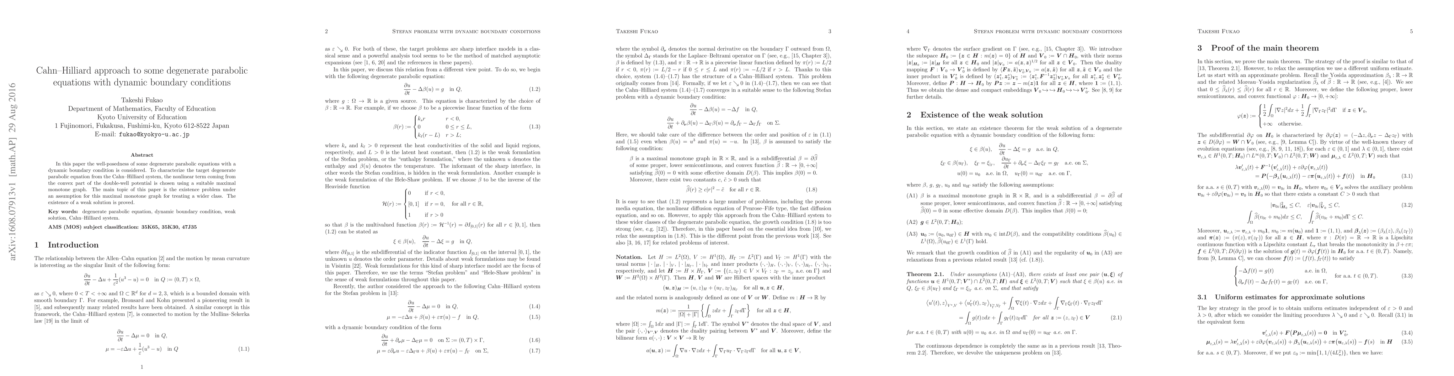 In this paper the well-posedness of some degenerate parabolic equations with a dynamic boundary condition is considered. To characterize the target degenerate parabolic equation from the Cahn-Hilliard system, the nonlinear term coming from the convex part of the double-well potential is chosen using a suitable maximal monotone graph. The main topic of this paper is the existence problem under an assumption for this maximal monotone graph for treating a wider class. The existence of a weak solution is proved.
