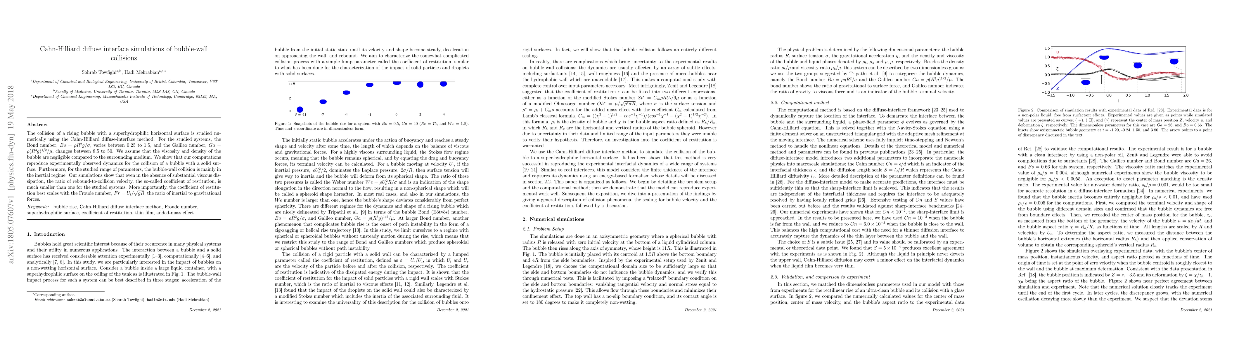 This paper uses Cahn-Hilliard diffuse-interface simulations to study bubble-wall collisions, showing good agreement with experimental observations. The simulations reveal that bubble-wall collisions occur predominantly in the inertial regime, with a coefficient of restitution scaling best with the Froude number.
