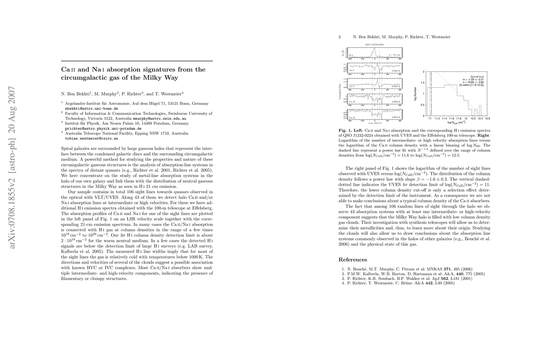 We combine CaII/NaI absorption and HI 21 cm emission line measurements to analyse the metal abundances, the distribution, the small-scale structure, and the physical conditions of intermediate- and high-velocity gas in the Galactic halo.