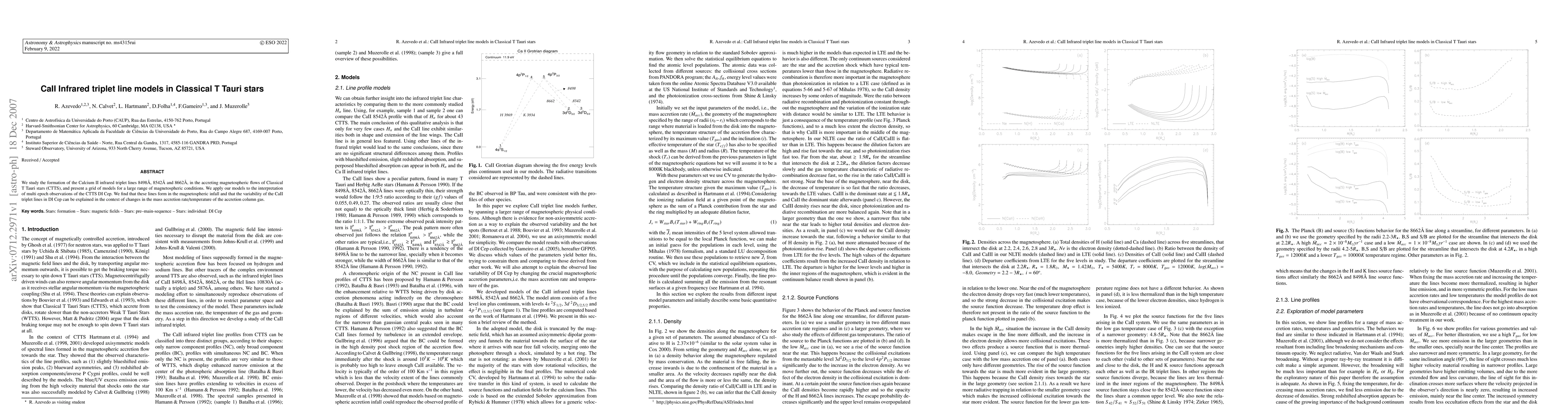 This paper investigates the formation of calcium II infrared triplet lines in Classical T Tauri stars, presenting models for various magnetospheric conditions. The study applies these models to observations of DI Cep, showing that line variability correlates with changes in mass accretion rate and temperature in the accretion column.