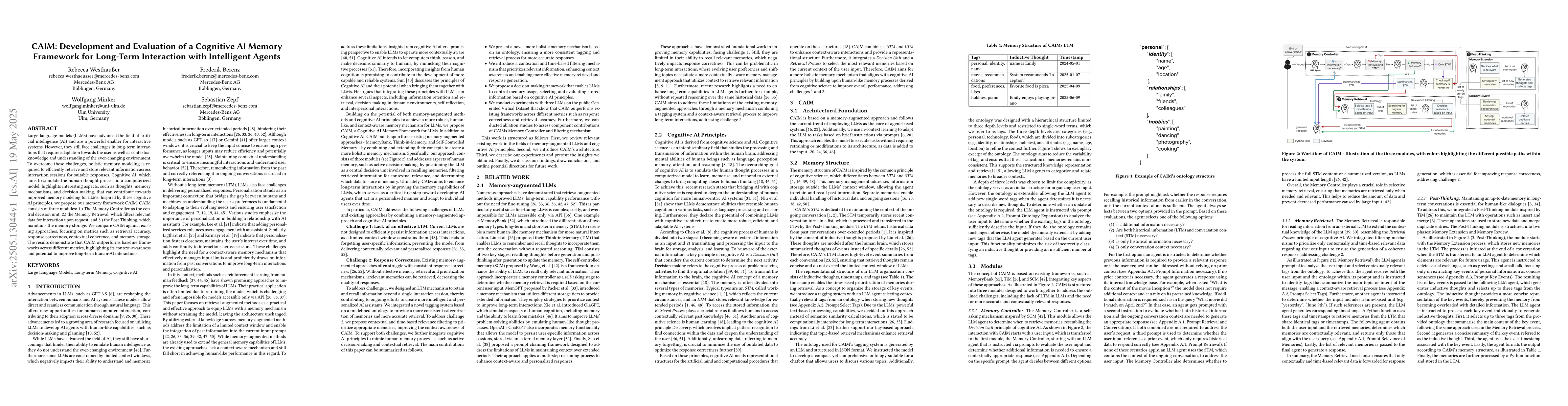 Researchers developed CAIM, a cognitive AI memory framework that improves long-term interactions with intelligent agents, outperforming existing approaches in key metrics such as retrieval accuracy and contextual coherence.