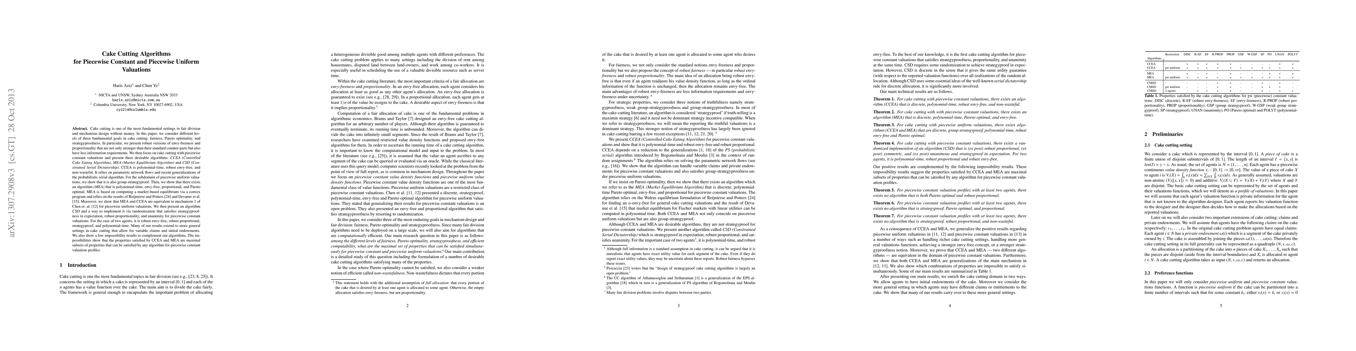Cake cutting is one of the most fundamental settings in fair division and mechanism design without money. In this paper, we consider different levels of three fundamental goals in cake cutting: fairness, Pareto optimality, and strategyproofness. In particular, we present robust versions of envy-freeness and proportionality that are not only stronger than their standard counter-parts but also have less information requirements. We then focus on cake cutting with piecewise constant valuations and present three desirable algorithms: CCEA (Controlled Cake Eating Algorithm), MEA (Market Equilibrium Algorithm) and CSD (Constrained Serial Dictatorship). CCEA is polynomial-time, robust envy-free, and non-wasteful. It relies on parametric network flows and recent generalizations of the probabilistic serial algorithm. For the subdomain of piecewise uniform valuations, we show that it is also group-strategyproof. Then, we show that there exists an algorithm (MEA) that is polynomial-time, envy-free, proportional, and Pareto optimal. MEA is based on computing a market-based equilibrium via a convex program and relies on the results of Reijnierse and Potters [24] and Devanur et al. [15]. Moreover, we show that MEA and CCEA are equivalent to mechanism 1 of Chen et. al. [12] for piecewise uniform valuations. We then present an algorithm CSD and a way to implement it via randomization that satisfies strategyproofness in expectation, robust proportionality, and unanimity for piecewise constant valuations. For the case of two agents, it is robust envy-free, robust proportional, strategyproof, and polynomial-time. Many of our results extend to more general settings in cake cutting that allow for variable claims and initial endowments. We also show a few impossibility results to complement our algorithms.