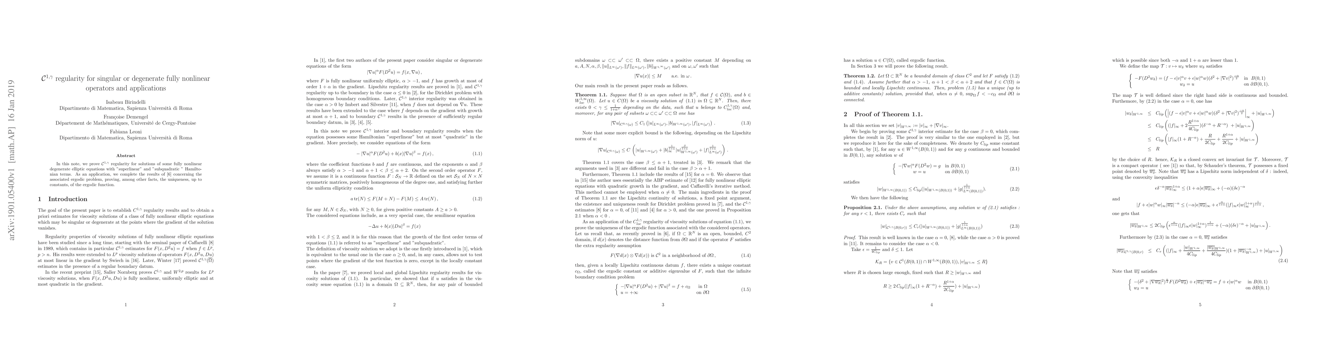 In this note, we prove $\mathcal{C}^{1,\gamma}$ regularity for solutions of some fully nonlinear degenerate elliptic equations with "superlinear" and "subquadratic " Hamiltonian terms. As an application, we complete the results of \cite{BDL1} concerning the associated ergodic problem, proving, among other facts, the uniqueness, up to constants, of the ergodic function.
