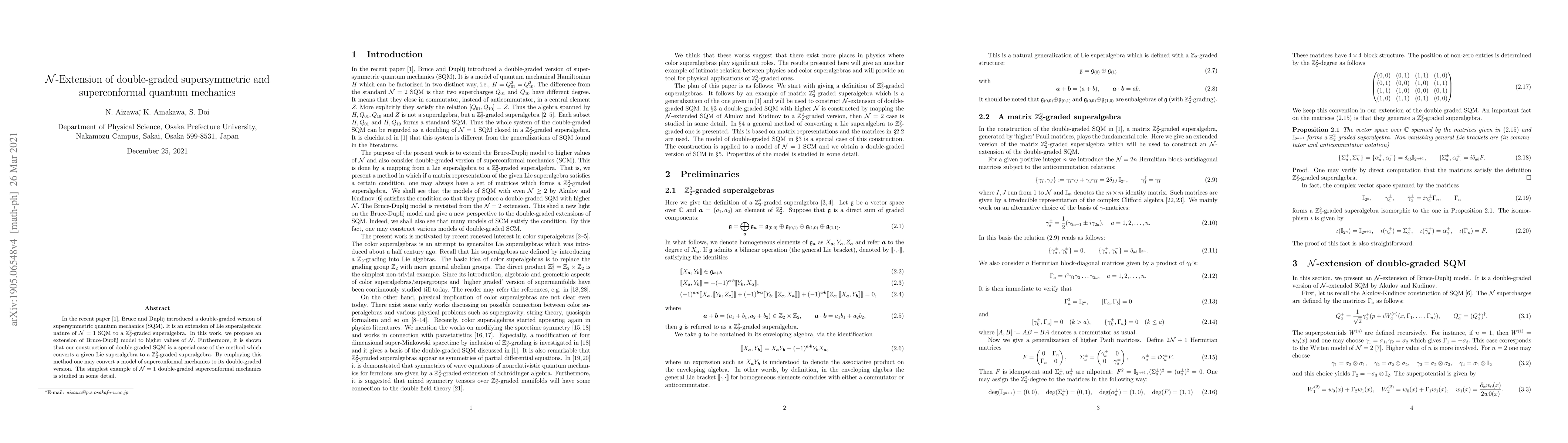This paper extends the Bruce-Duplij double-graded supersymmetric quantum mechanics to higher $\cal N$ values by converting a given Lie superalgebra to a $\mathbb{Z}_2^2$-graded superalgebra. It also applies this method to superconformal mechanics, studying the simplest ${\cal N}=1$ double-graded superconformal mechanics in detail.