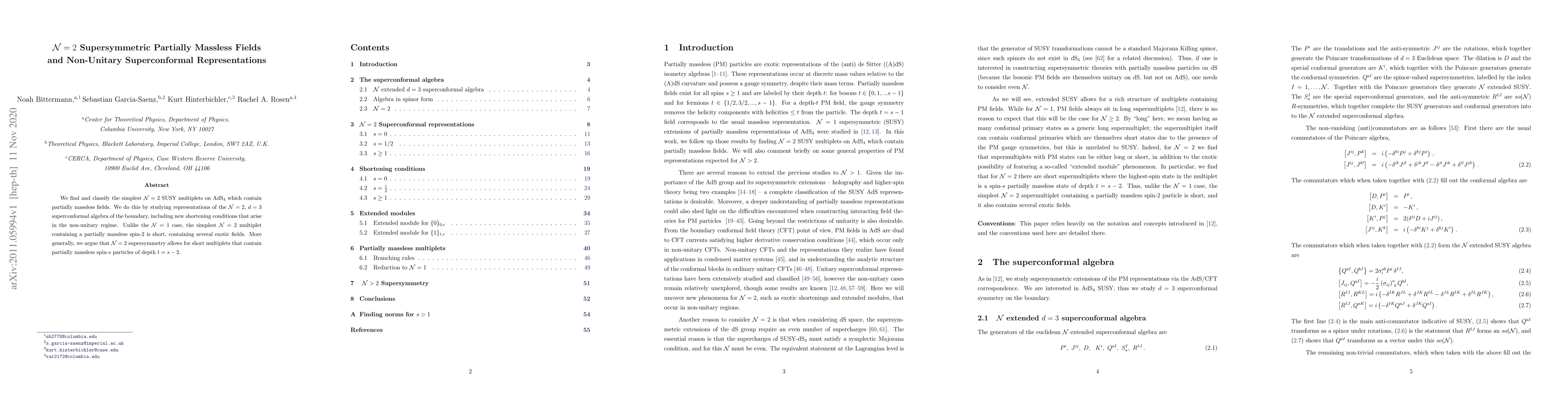 We find and classify the simplest ${\cal N}=2$ SUSY multiplets on AdS$_4$ which contain partially massless fields. We do this by studying representations of the ${\cal N}=2$, $d=3$ superconformal algebra of the boundary, including new shortening conditions that arise in the non-unitary regime. Unlike the ${\cal N}=1$ case, the simplest ${\cal N}=2$ multiplet containing a partially massless spin-2 is short, containing several exotic fields. More generally, we argue that ${\cal N}=2$ supersymmetry allows for short multiplets that contain partially massless spin-$s$ particles of depth $t=s-2$.
