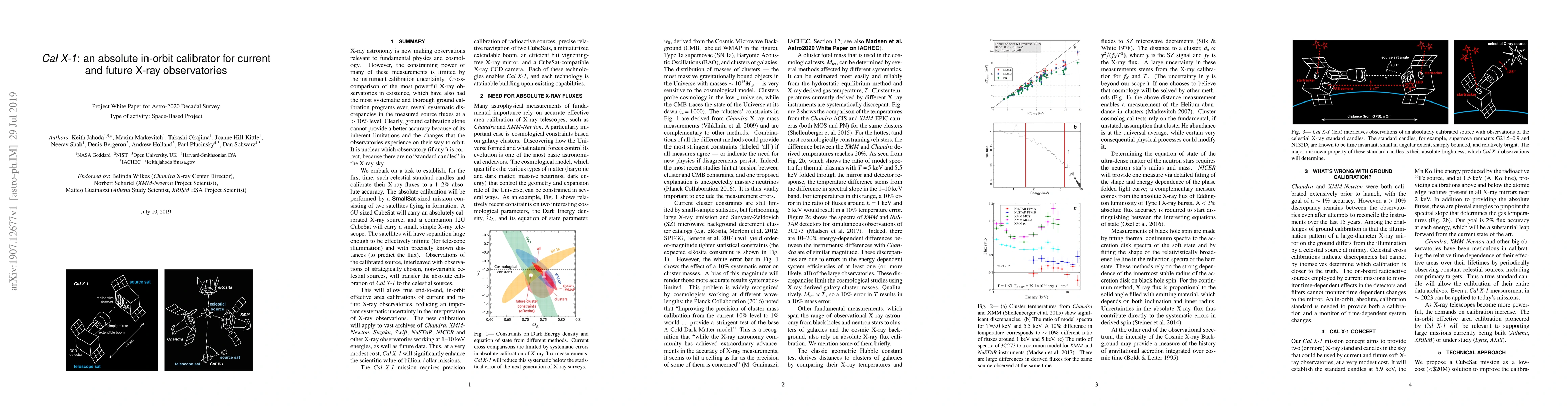 Cal X-1 is a SmallSat mission concept that enables absolute calibration of current and future X-ray observatories by providing an absolutely calibrated X-ray source in orbit.