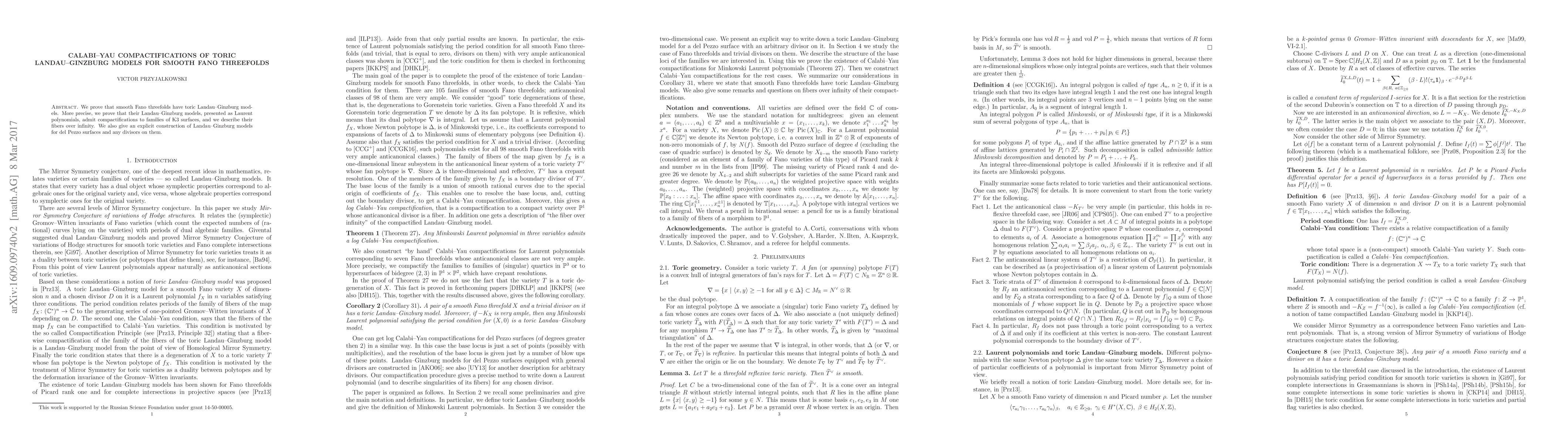 Summary: This paper demonstrates that smooth Fano threefolds can be represented by toric Landau-Ginzburg models. It further proves that these models compactify into families of K3 surfaces and describes the fibers at infinity, alongside providing explicit constructions for del Pezzo surfaces and their divisors.