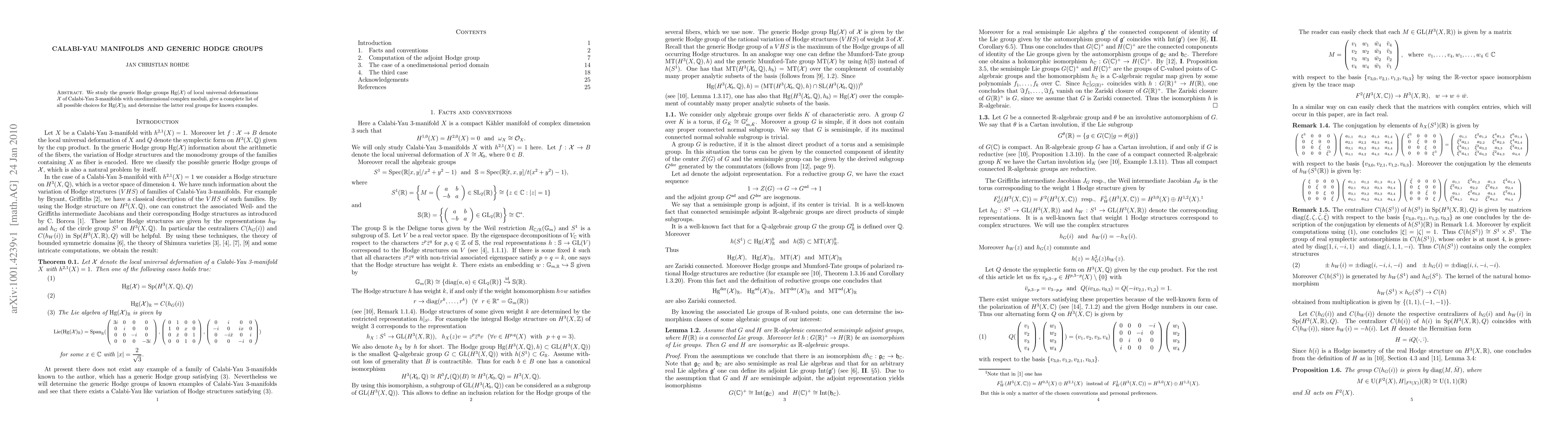 Summary: This research identifies and classifies the generic Hodge groups $\Hg(\sX)$ for local deformations of Calabi-Yau 3-manifolds, providing a comprehensive list of possible real groups $\Hg(\sX)_{\R}$ and determining these groups for well-known examples.