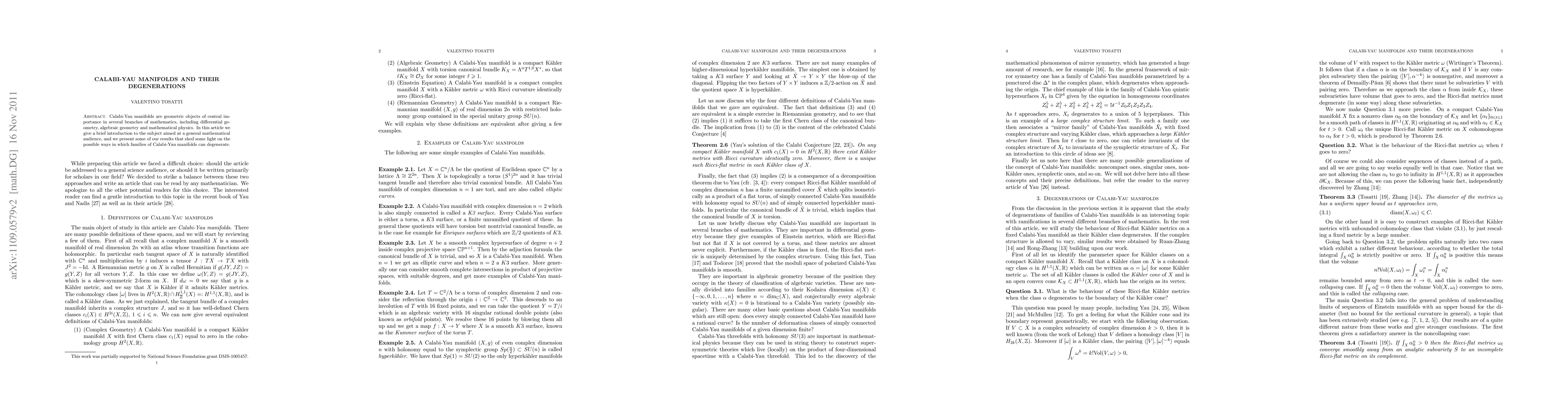 Summary: This expository note provides an overview of Calabi-Yau manifolds, focusing on their Ricci-flat metrics and the study of their degenerations, elucidating the structures and behaviors of these special geometric objects.