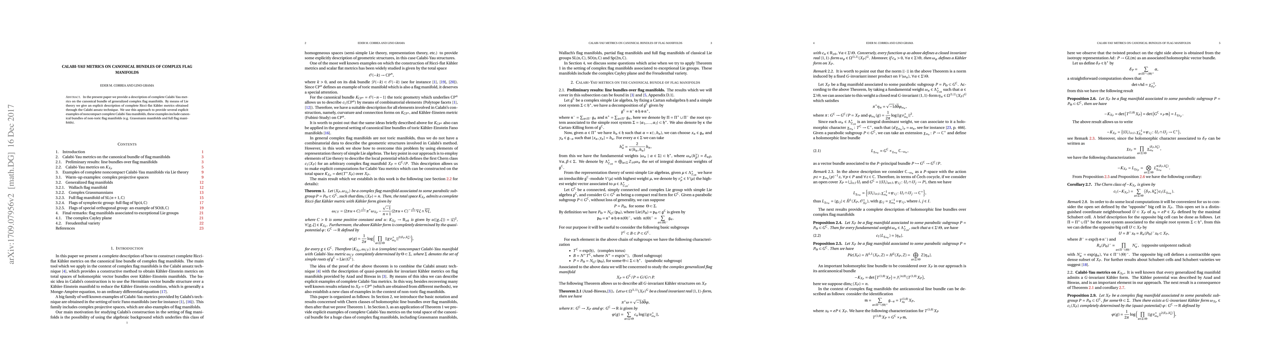 This paper describes complete Calabi-Yau metrics on the canonical bundles of generalized complex flag manifolds using Lie theory and the Calabi ansatz technique, providing explicit examples of noncompact Calabi-Yau manifolds including Grassmann and full flag manifolds.