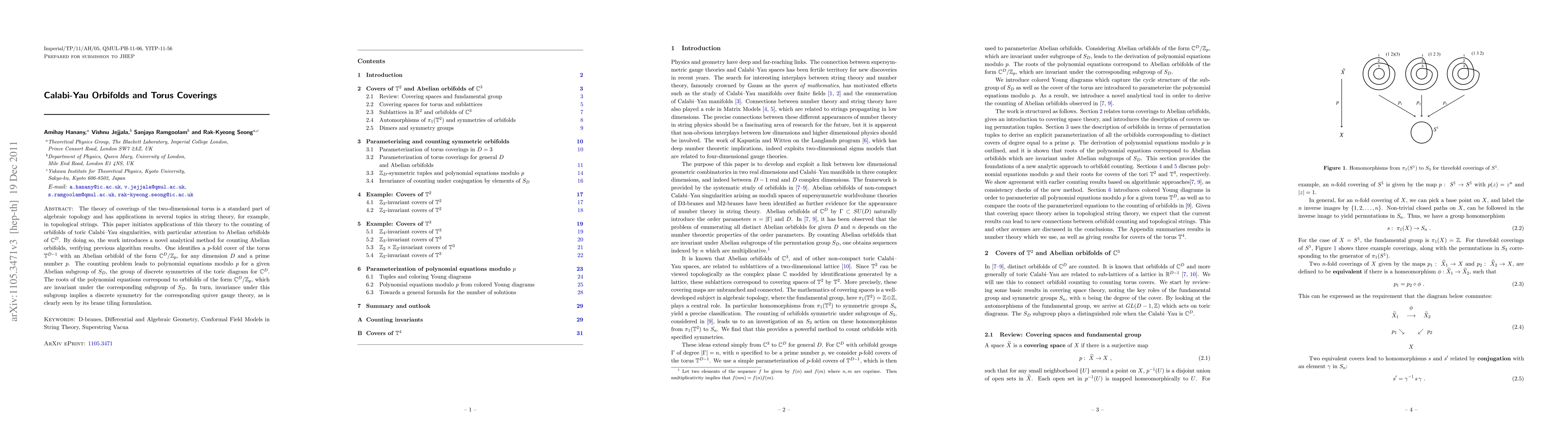 The theory of coverings of the two-dimensional torus is a standard part of algebraic topology and has applications in several topics in string theory, for example, in topological strings. This paper initiates applications of this theory to the counting of orbifolds of toric Calabi-Yau singularities, with particular attention to Abelian orbifolds of C^D. By doing so, the work introduces a novel analytical method for counting Abelian orbifolds, verifying previous algorithm results. One identifies a p-fold cover of the torus T^{D-1} with an Abelian orbifold of the form C^D/Z_p, for any dimension D and a prime number p. The counting problem leads to polynomial equations modulo p for a given Abelian subgroup of S_D, the group of discrete symmetries of the toric diagram for C^D. The roots of the polynomial equations correspond to orbifolds of the form C^D/Z_p, which are invariant under the corresponding subgroup of S_Ds. In turn, invariance under this subgroup implies a discrete symmetry for the corresponding quiver gauge theory, as is clearly seen by its brane tiling formulation.
