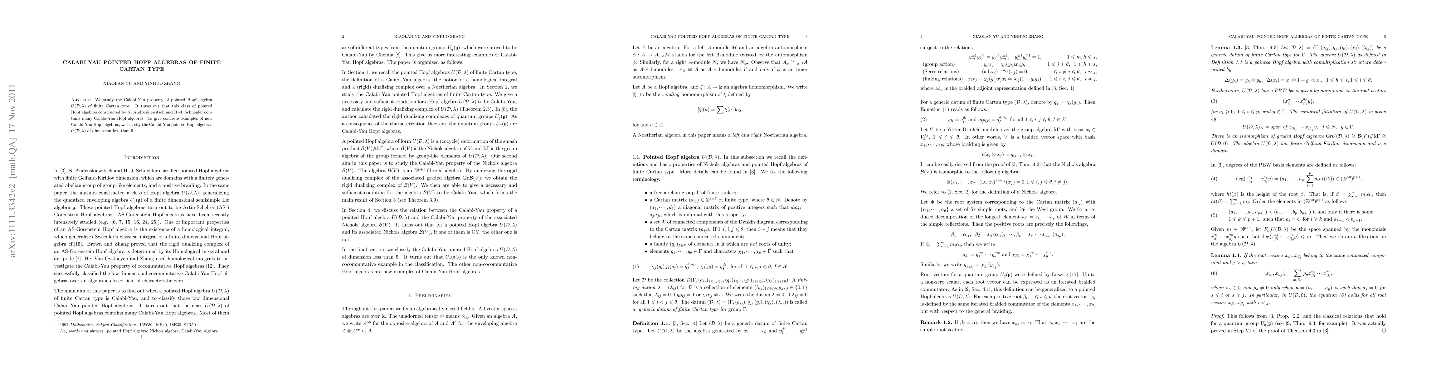 We study the Calabi-Yau property of pointed Hopf algebra $U(\mc{D},\lmd)$ of finite Cartan type. It turns out that this class of pointed Hopf algebras constructed by N. Andruskiewitsch and H.-J. Schneider contains many Calabi-Yau Hopf algebras. To give concrete examples of new Calabi-Yau Hopf algebras, we classify the Calabi-Yau pointed Hopf algebras $U(\mc{D},\lmd)$ of dimension less than 5.