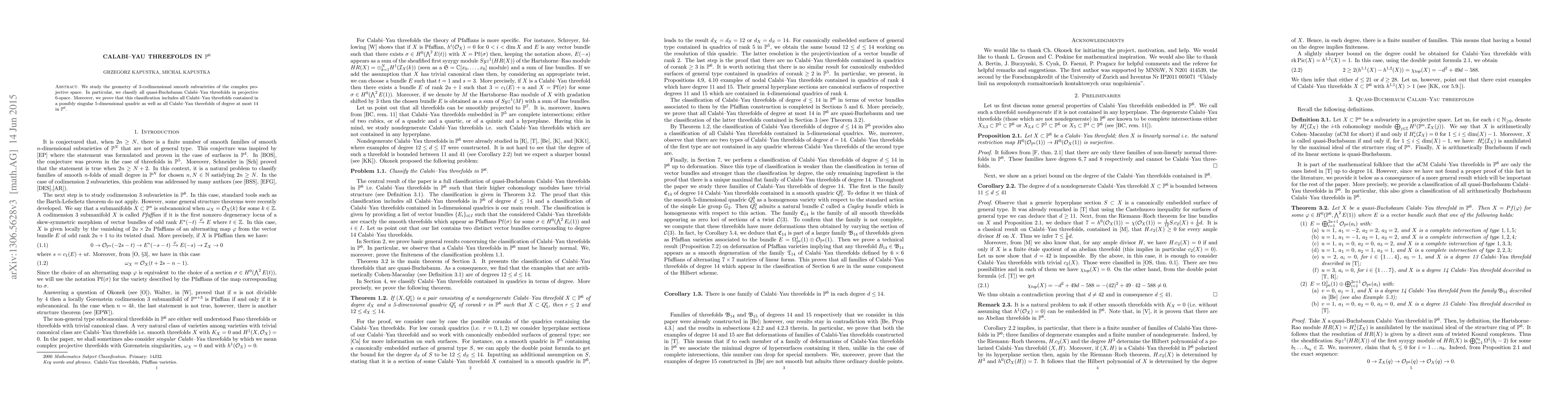 This paper classifies quasi-Buchsbaum Calabi-Yau threefolds in complex projective 6-space, including those within singular 5-dimensional quadrics and those of degree at most 14. The study contributes to the understanding of the geometry of these subvarieties.
