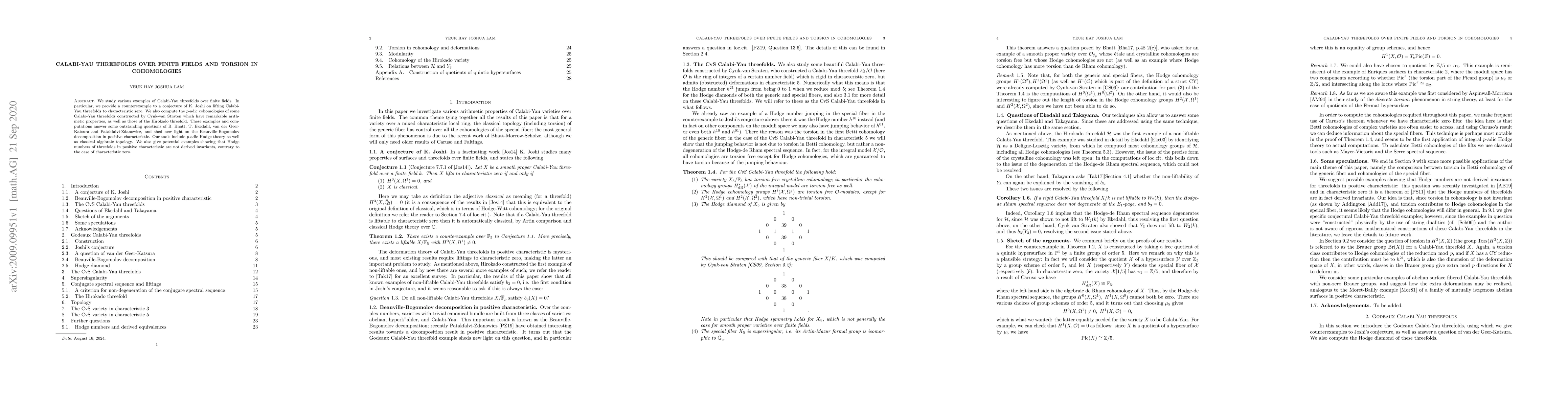 This paper examines Calabi-Yau threefolds over finite fields, presenting a counterexample to Joshi's conjecture on lifting these structures to characteristic zero. It computes p-adic cohomologies of specific examples, resolving questions by Bhatt, Ekedahl, van der Geer-Katsura, and Patakfalvi-Zdanowicz, and offers new insights into the Beauville-Bogomolov decomposition in positive characteristic using p-adic Hodge theory and algebraic topology.