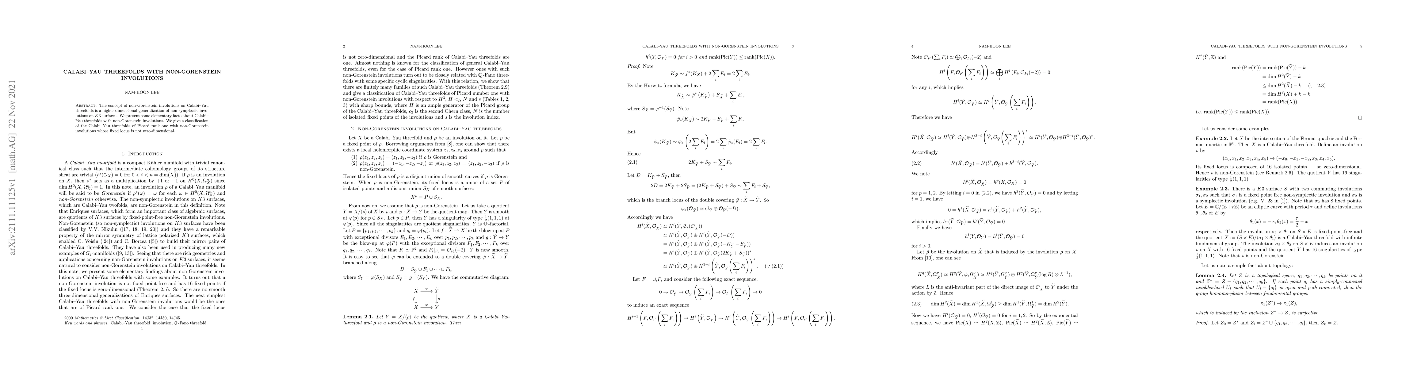 Summary: This paper explores the properties of Calabi-Yau threefolds under non-Gorenstein involutions, classifying those with Picard rank one where the fixed locus is not zero-dimensional, extending the concept from non-symplectic involutions on K3 surfaces.