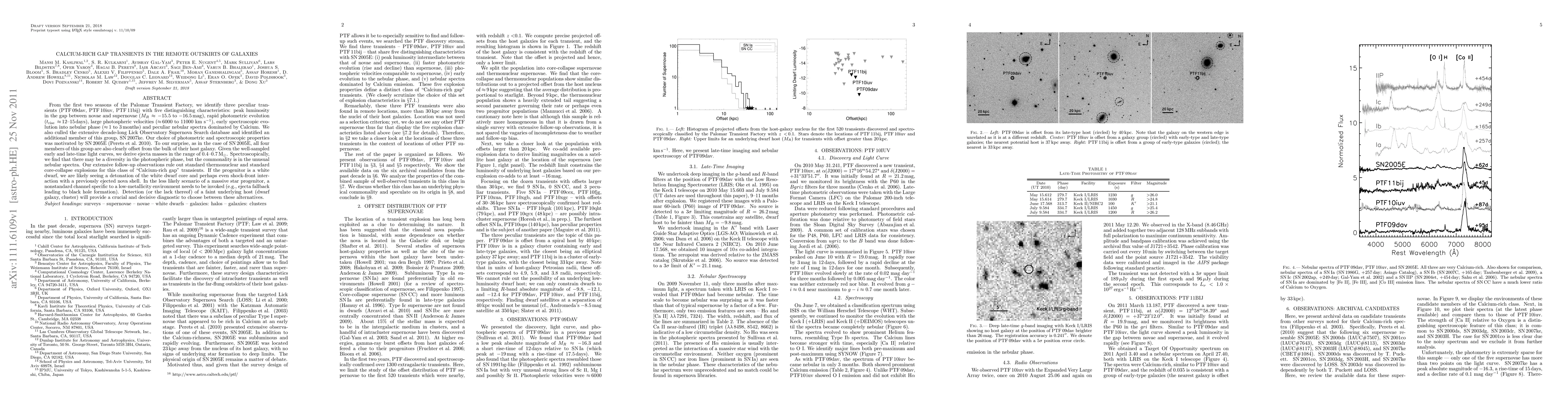 This paper identifies four peculiar "Calcium-rich gap" transients with intermediate luminosity between novae and supernovae, rapid evolution, and unique nebular spectra dominated by Calcium. These transients are offset from their host galaxies and suggest non-standard explosion mechanisms, possibly involving white dwarf detonations or non-standard channels in low-metallicity environments.